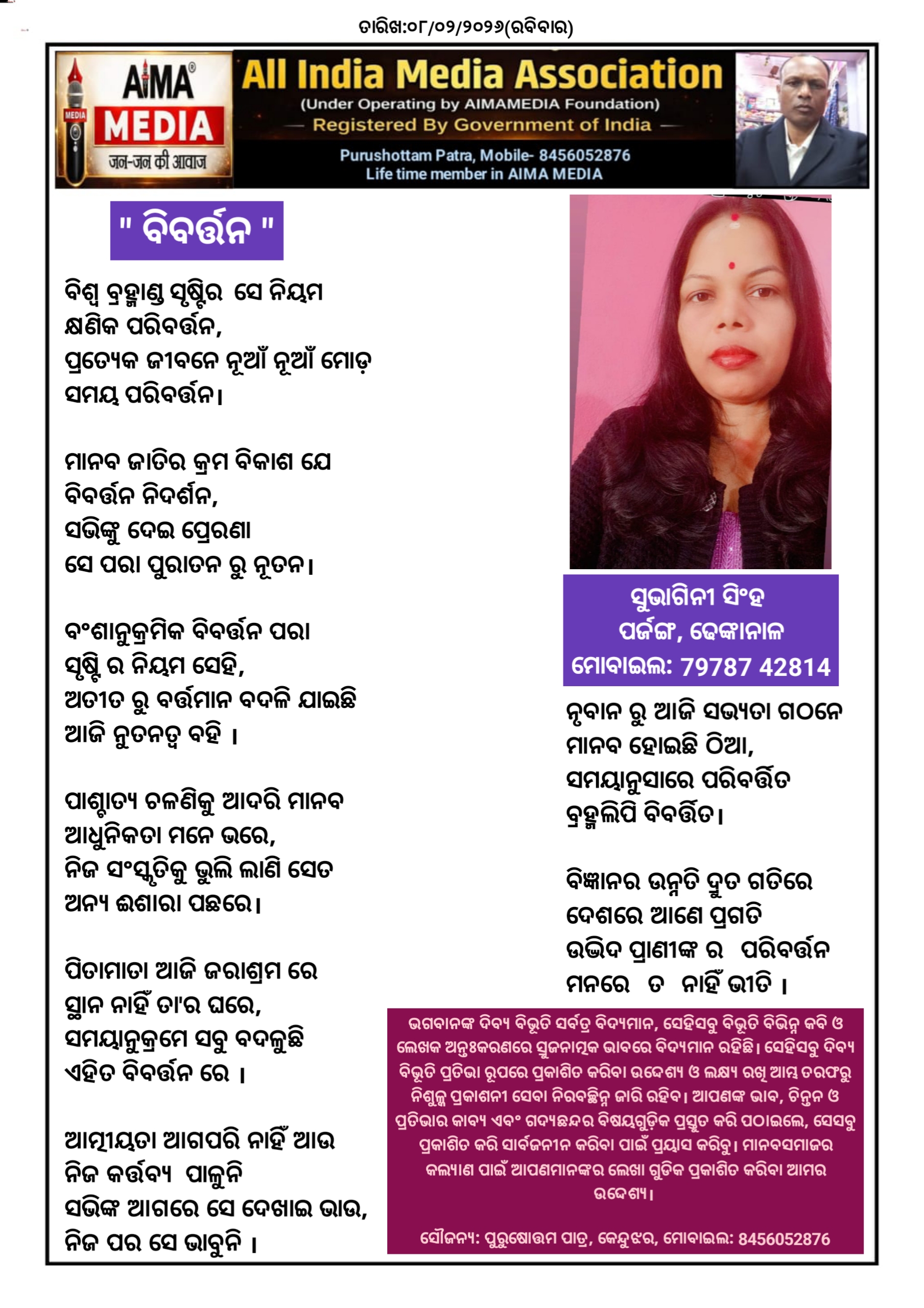 ବିବର୍ତ୍ତନ - ସୁଭାଗିନୀ ସିଂହ ଙ୍କ ଦ୍ଵାରା ରଚିତ କବିତା।