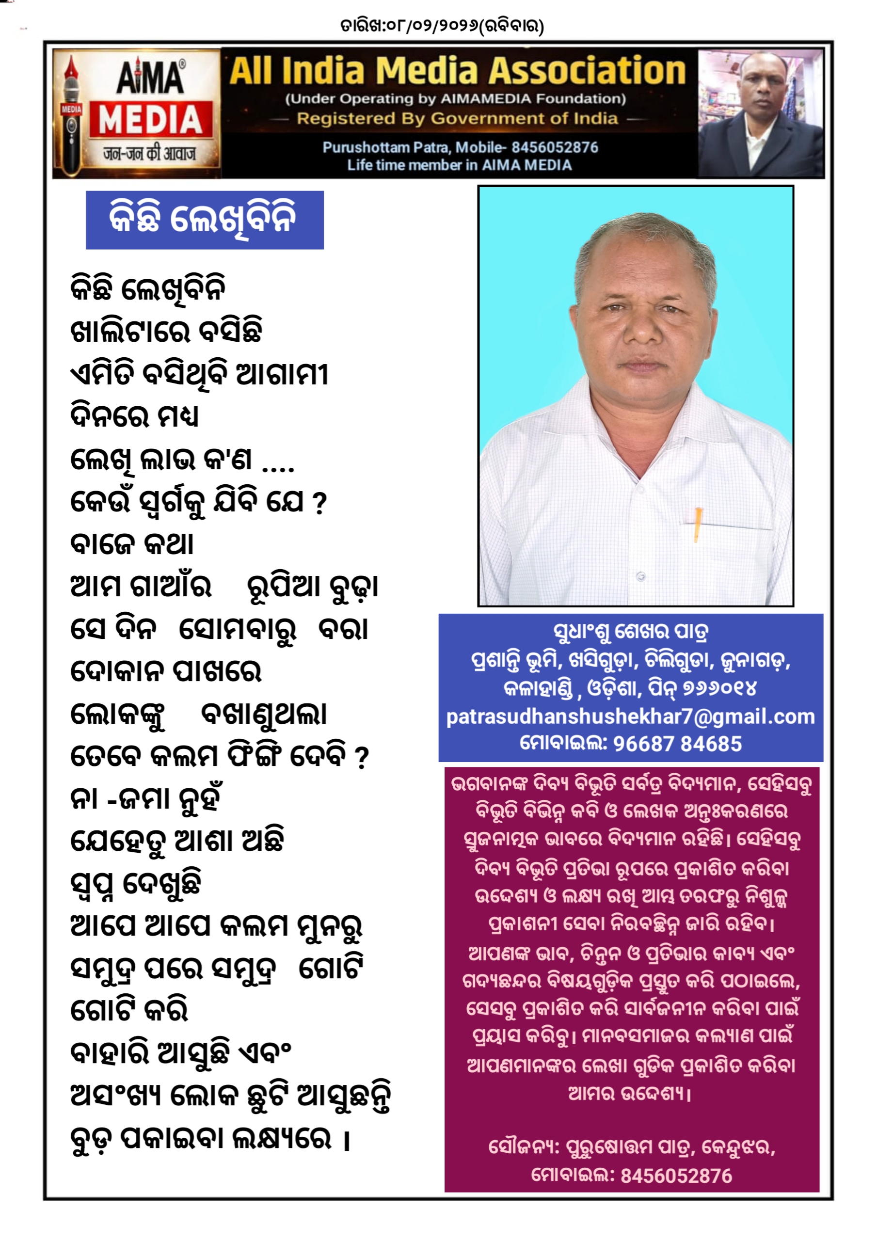 କିଛି ଲେଖିବିନି - ସୁଧାଂଶୁ ଶେଖର ପାତ୍ର ଙ୍କ ଦ୍ଵାରା ରଚିତ କବିତା।