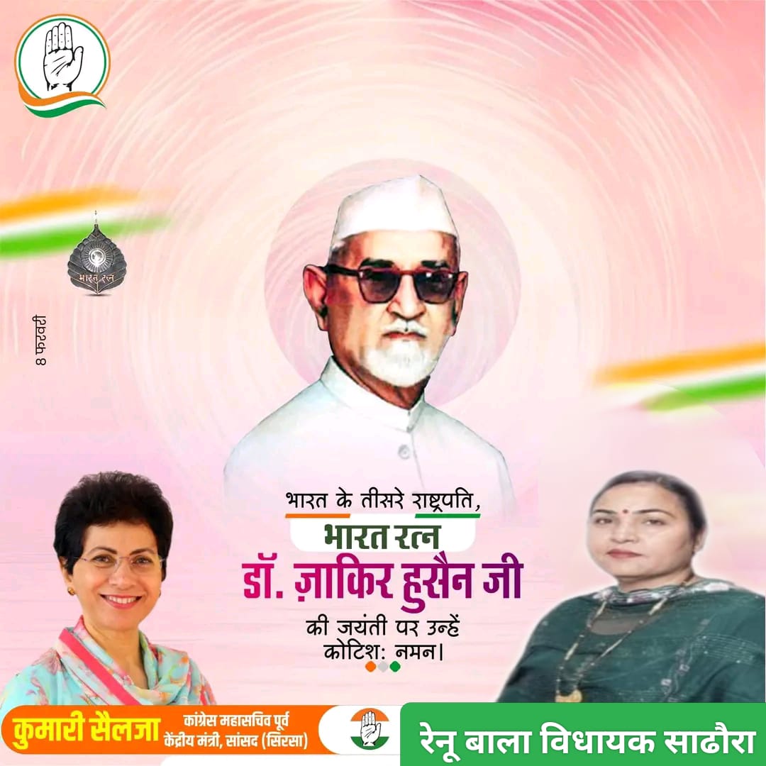 कपुरी :- हल्का सधौरा विधायक मैडम रेणु बाला जी नें, "बिहार के पूर्व राज्यपाल, स्वतंत्रता सेनानी, महान‌ शिक्षाविद् भारत के पूर्व राष्ट्रपति " भारत रत्न " डॉ. जा़किर हुसैन जी की जयंती पर उन्हें ! सादर नमन् "!