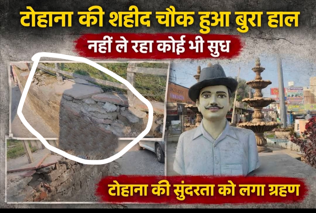 टोहाना के शहीद चौक की बदहाली पर उठे सवाल विकास को कपड़े से ढककर क्यों छुपाया जा रहा है?