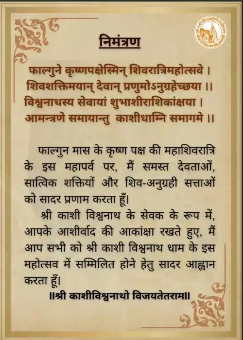 महाशिवरात्रि पर काशी विश्वनाथ धाम में देवी-देवताओं और दिव्य शक्तियों को आमंत्रण, मंदिर न्यास ने आमंत्रण पत्र के माध्यम से किया आह्वान....