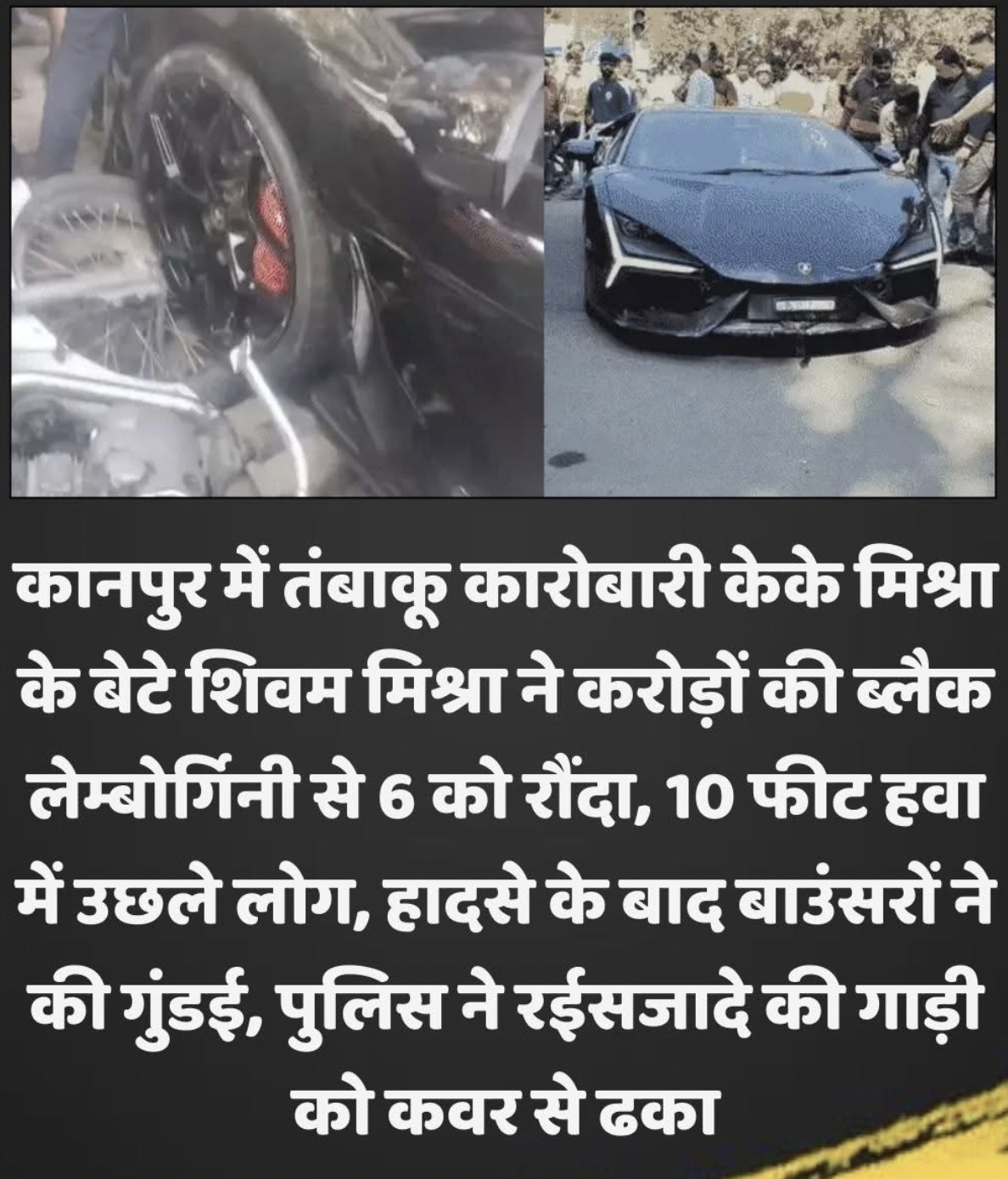 कानपुर में 'रईस'जादे का खूनी तांडव! बाउंसरों ने की गुंडई, पुलिस गाडी को सुरक्षित करने में जुटी, कार पर डाला कवर कि कोई स्क्रैच ना पहुंचा दे. अब सवाल उठने लगा है कि क्या आम लोगों की जिंदगी की किसी की नजर में कोई वेल्यू नहीं है?