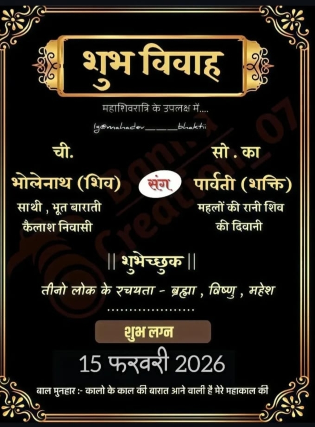 समाजसेवी दीपक मित्तल ने बताया कि महाशिवरात्रि भगवान शिव और माता पार्वती के पावन विवाह का प्रतीक पर्व है और इसी भाव को जन-जन तक पहुंचाने के उद्देश्य से महाशिवरात्रि के पर्व पर 15 फरवरी दिन रविवार को पूरे श्रद्धा, भक्ति और उल्लास के साथ नगर में पहली बार शिव बारात निकाली जाएगी। शिव बारात का शुभारंभ शाम चार बजे मनोहर लाल आयुर्वेदिक अस्पताल के पास स्थित बाजपेई मंदिर से किया जाएगा। यहां विधिवत पूजन-अर्चन के बाद भगवान शिव की बारात विभिन्न झांकियों के साथ नगर भ्रमण के लिए रवाना होगी। बारात नगर के प्रमुख मार्गों से होते हुए बड़ी माता मंदिर पहुंचेगी, जहां विधि-विधान से शिव विवाह का आयोजन किया जाएगा। इस दौरान धार्मिक अनुष्ठान, वैदिक मंत्रोच्चारण और सांस्कृतिक प्रस्तुतियां आकर्षण का केंद्र रहेंगी। शिव बारात में भगवान शिव, माता पार्वती, गणेश, नंदी, भूत-प्रेतों की झांकियां और पारंपरिक वाद्य यंत्रों के साथ भक्ति संगीत की प्रस्तुति की जाएगी। नगरवासियों को एक दिव्य और आध्यात्मिक अनुभव प्रदान करने के लिए विशेष रूप से आकर्षक झांकियों और साज-सज्जा की व्यवस्था की जा रही है। दीपक मित्तल ने बताया कि उन्होंने विश्वास जताया कि नगरवासियों के सहयोग से यह आयोजन यादगार और ऐतिहासिक बनेगा।