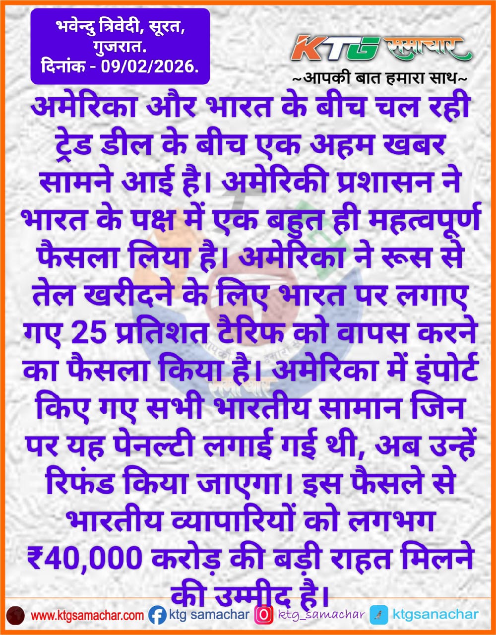 अमेरिका और भारत के बीच चल रही ट्रेड डील के बीच एक अहम खबर सामने आई है।