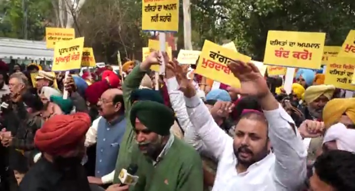आम आदमी पार्टी द्वारा चंडीगढ विच प्रताप सिंह बाजवा खिलाफ धरना दिया जा रहा प्रताप सिंह बाजवा द्वारा जो दलित समाज दे खिलाफ गलत शब्दावली की गई है उसको बर्दाश्त नहीं किया जाए गए प्रताप बाजवा जी को माफी मांगनी चाहिए