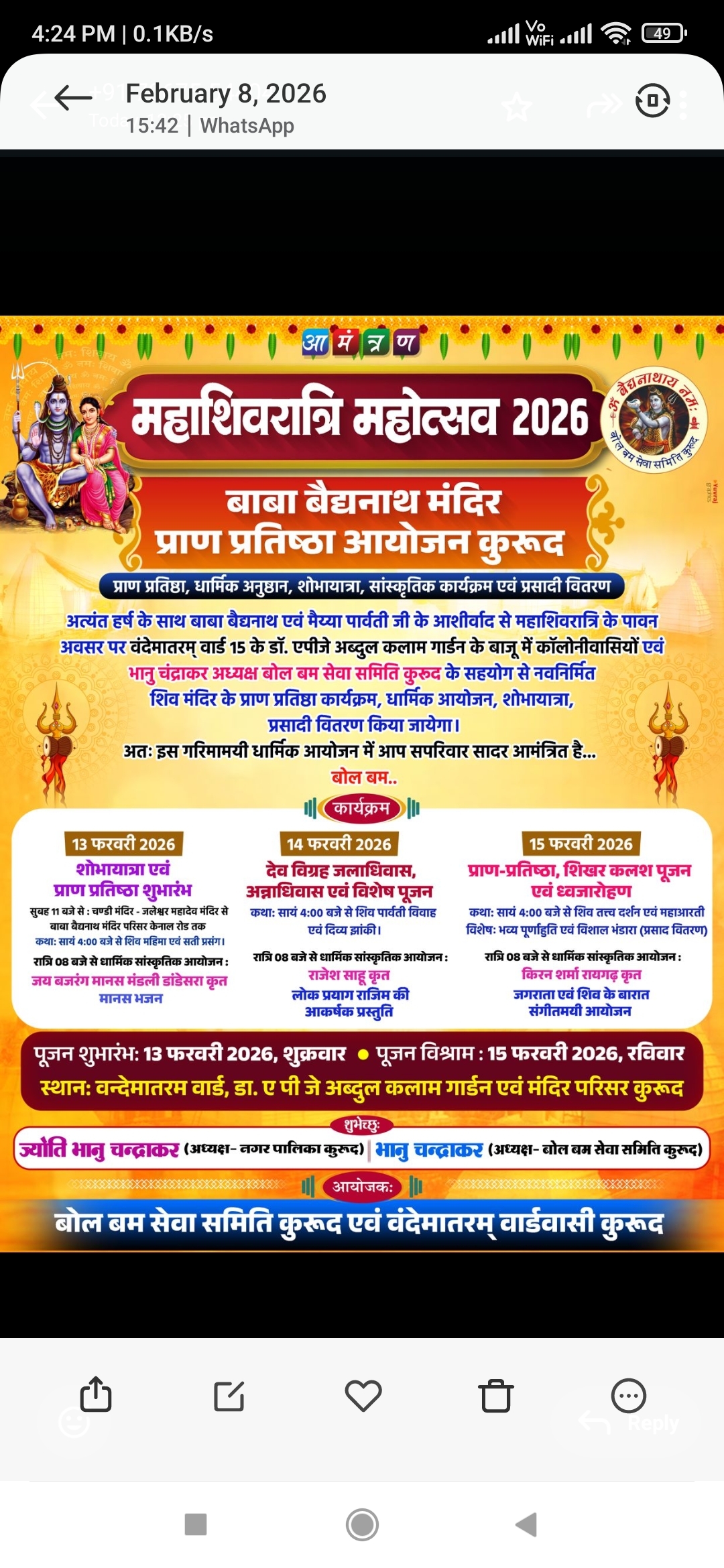 महाशिव रात्रि मे प्राण प्रतिष्ठा बाबा वैद्यनाथ