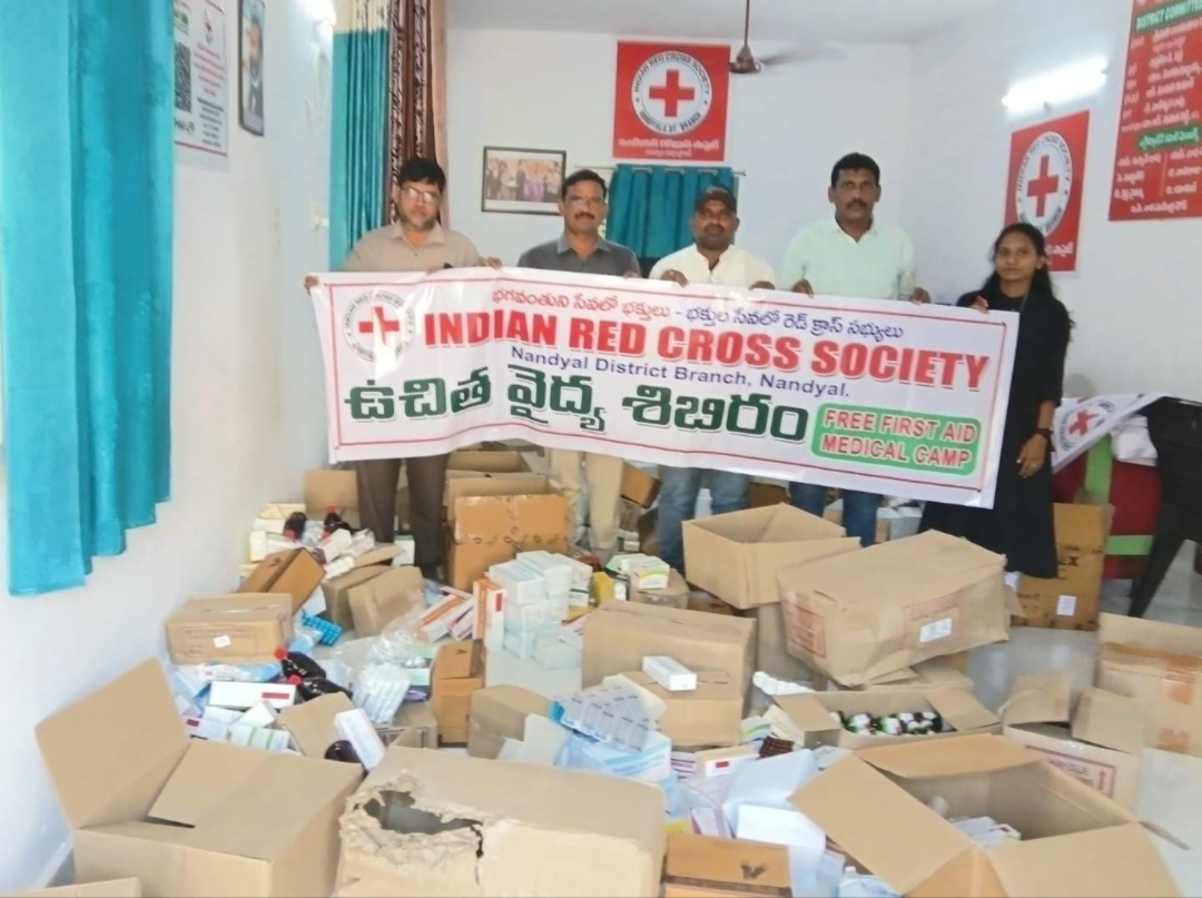 నంద్యాల రెడ్ క్రాస్ ఆధ్వర్యంలో శ్రీశైలం వెంకటాపురం వైద్య శిబిరాలకు మందుల పంపిణీ