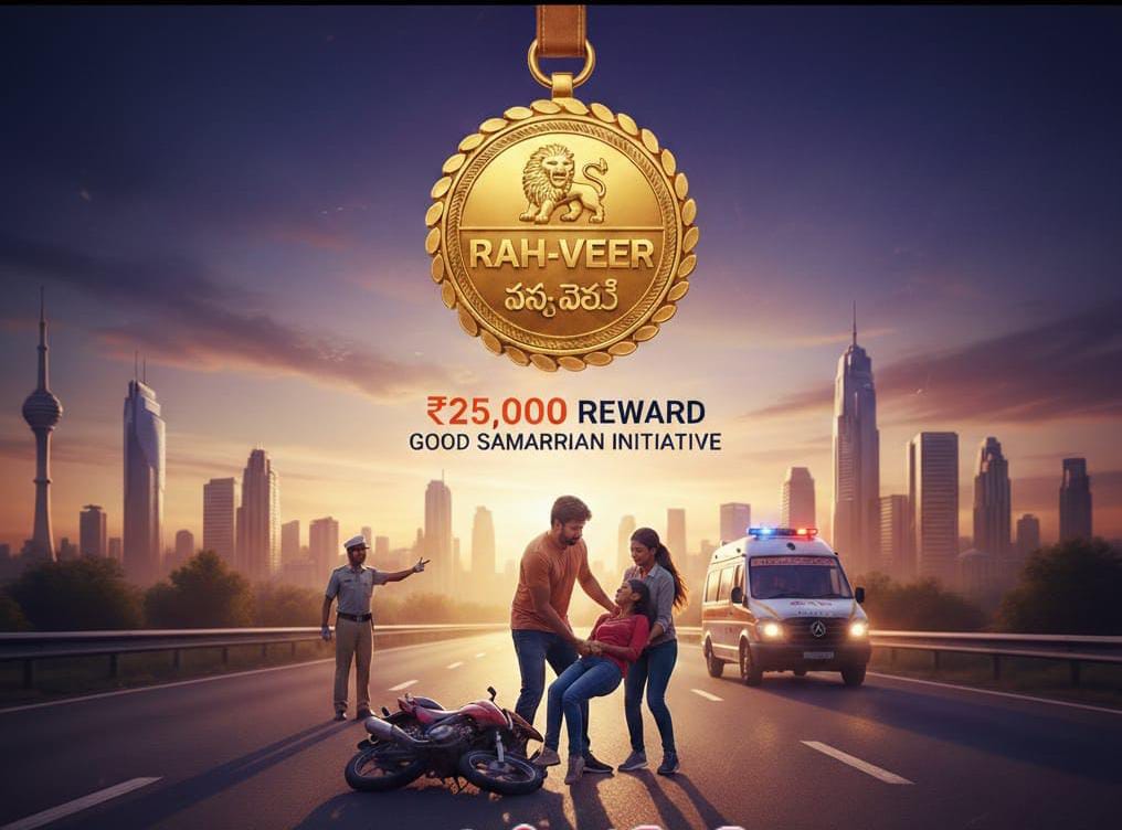 *రోడ్డు ప్రమాదం జరిగిన మొదటి గంటను 'గోల్డెన్ అవర్' అంటారు. ఆ సమయంలో బాధితులను ఆసుపత్రికి చేర్చి ప్రాణాలు కాపాడే వ్యక్తులకు (గుడ్ సమారిటన్స్) ప్రభుత్వం రూ. 25,000 నగదు బహుమతి మరియు ప్రశంసా పత్రాన్ని అందిస్తుంది.*