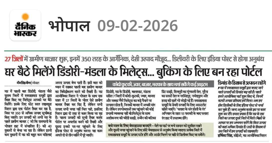 घर बैठे मिलेंगे डिंडोरी - मंडला के मिलेट्स, बुकिंग के लिए बन रहा पोर्टल