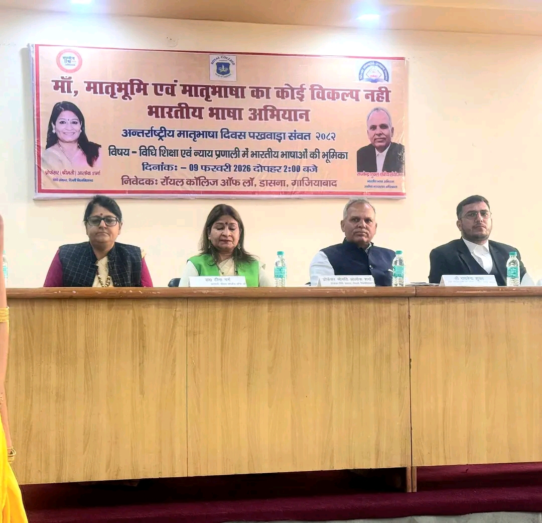 अंतर्राष्ट्रीय भाषा दिवस के पखवाड़े से पूर्व रॉयल कॉलेज ऑफ लॉ, गाजियाबाद (मेरठ प्रान्त) में भारतीय भाषा अभियान के अंतर्गत एक भव्य एवं विचारोत्तेजक कार्यक्रम का आयोजन किया गया। यह कार्यक्रम भारतीय भाषाओं के संरक्षण, संवर्धन और उनके व्यावहारिक उपयोग को बढ़ावा देने के उद्देश्य से आयोजित किया गया, जिसमें शिक्षाविदों, अधिवक्ताओं एवं विद्यार्थियों की उल्लेखनीय सहभागिता देखने को मिली।
