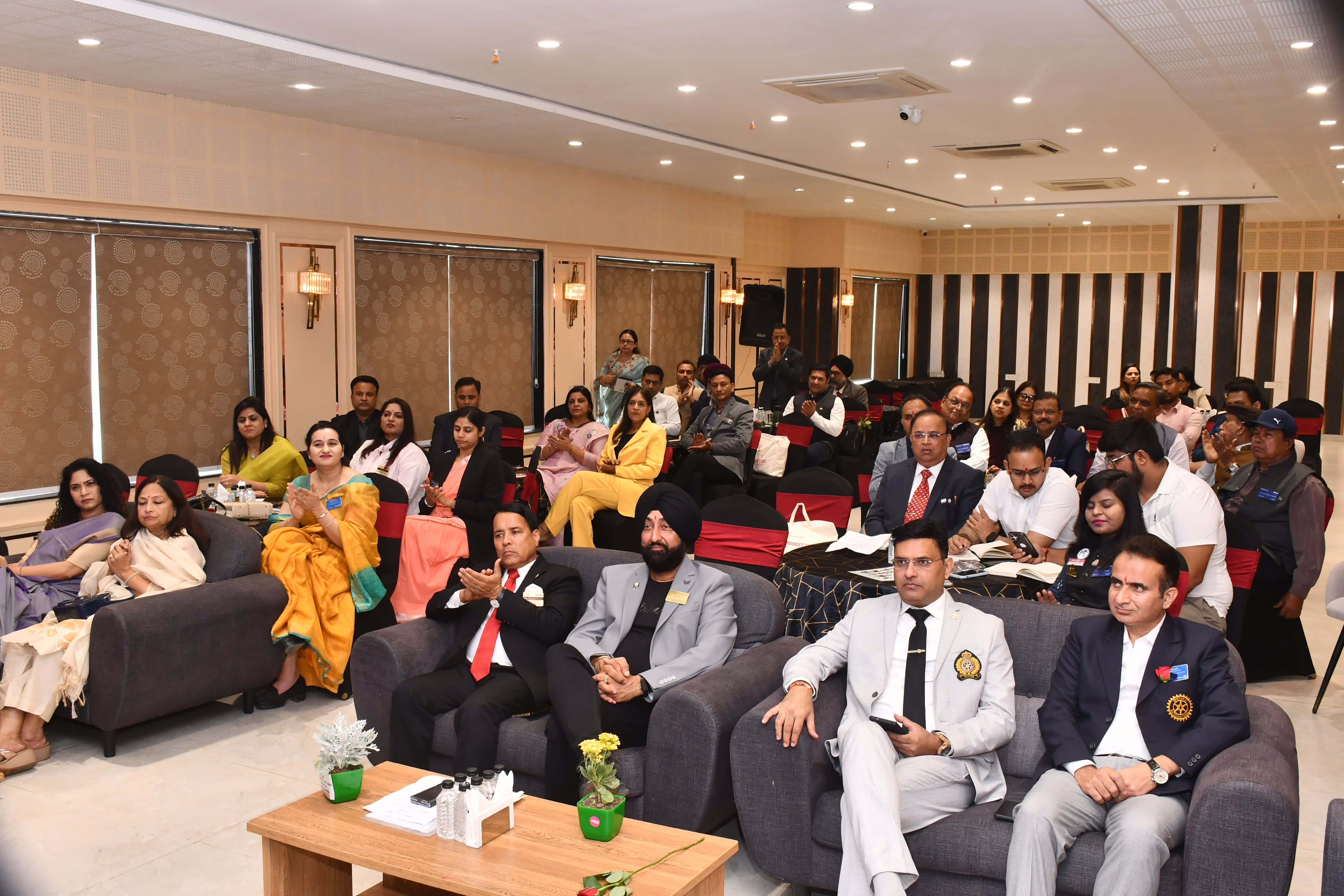 The event was attended by District Governor Rtn. Amit Jaiswal, District Governor Nominee Rtn. Bhanu Pratap, District Governor Nominee Designate Rtn. Naveen Bhansawar, DLF PDG FC Mahiti, and PDG Dr. R. P. Sharma. Training sessions were delivered by senior Rotarians PP Ranbir Singh Marhas, PP Shilpi Choudhary, PP Ashish Agrawal, PP Hamida Siddiqui, PP Satish Shah, PP Kamaljeet Chhabra, and Rtn. Ajay Agrawal, covering leadership, club administration, membership development, public image, and Rotary Foundation.