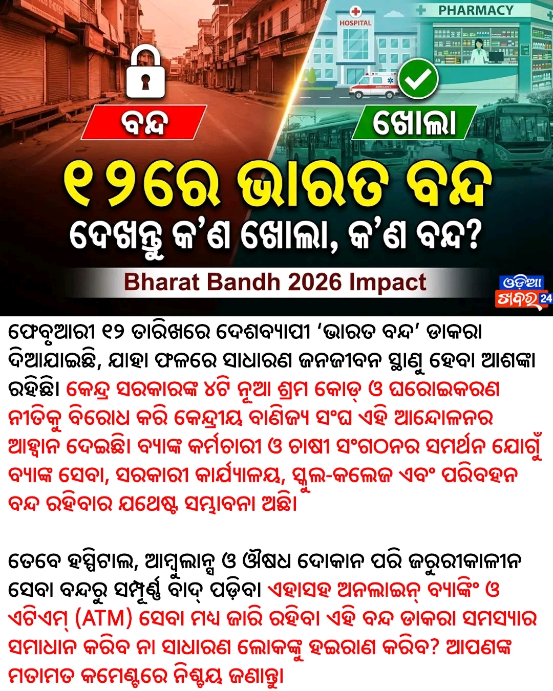 12 th Bharat Bandh: Auxiliary opening and other close.