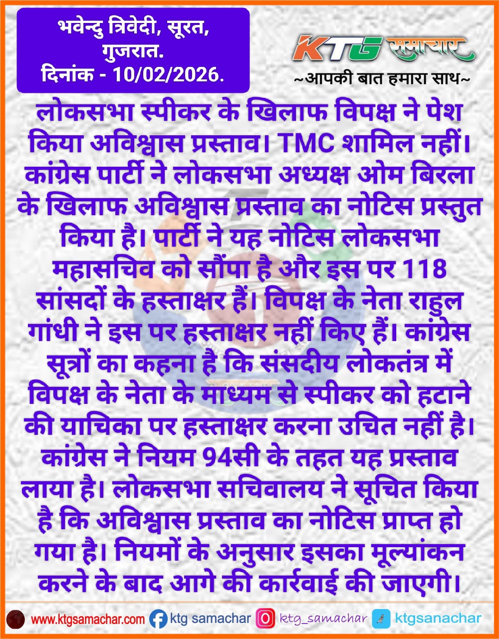 लोकसभा स्पीकर के खिलाफ विपक्ष ने पेश किया अविश्वास प्रस्ताव का नोटिस।