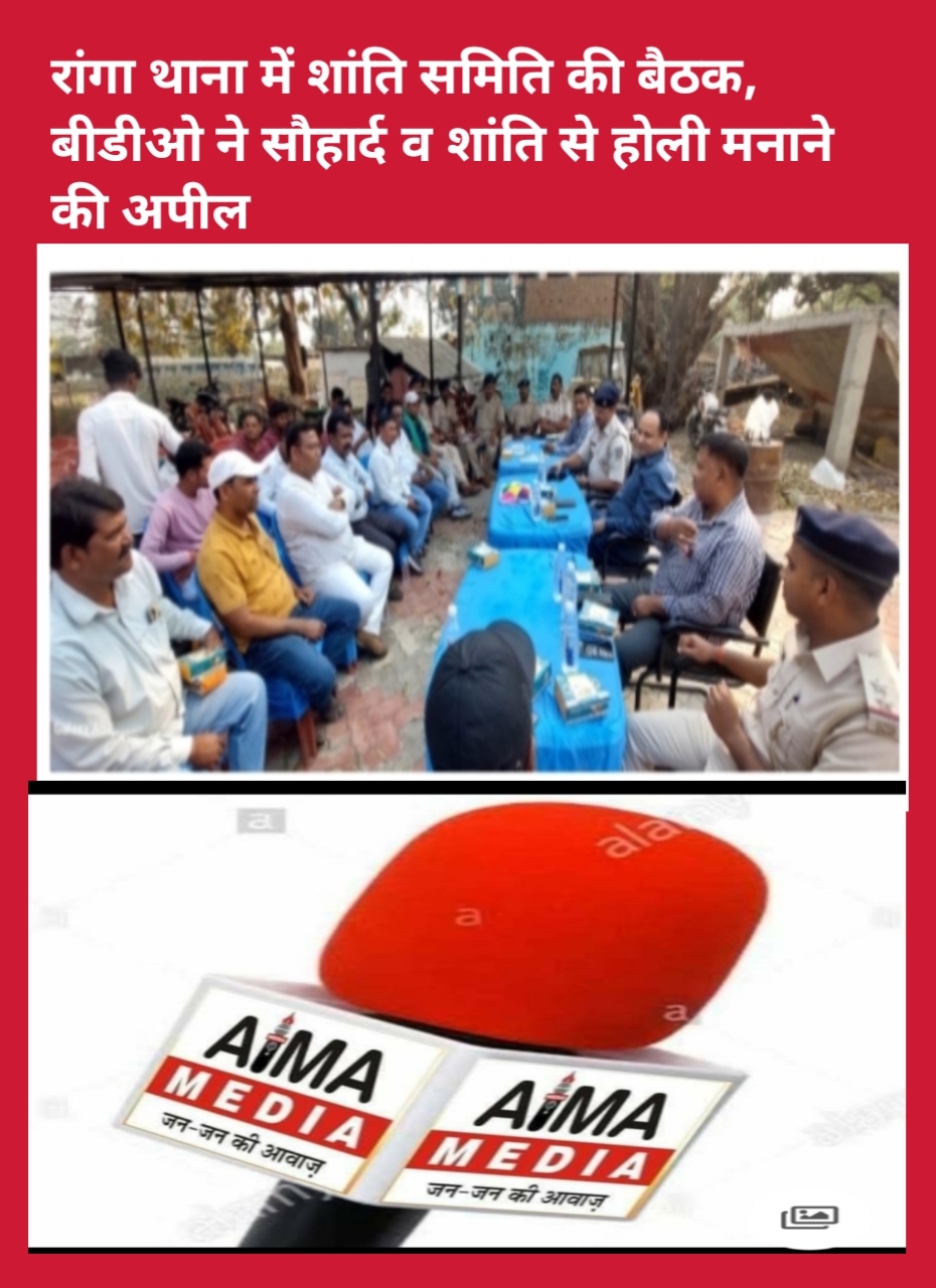 साहिबगंज जिले के रांगा थाना परिसर में मंगलवार को पतना प्रखंड विकास पदाधिकारी (बीडीओ) श्री कुमार देवेश द्विवेदी की अध्यक्षता में शांति समिति की बैठक आयोजित की गई। बैठक में आगामी होली पर्व को शांतिपूर्ण, सौहार्दपूर्ण और भाईचारे के माहौल में मनाने पर विशेष जोर दिया गया।