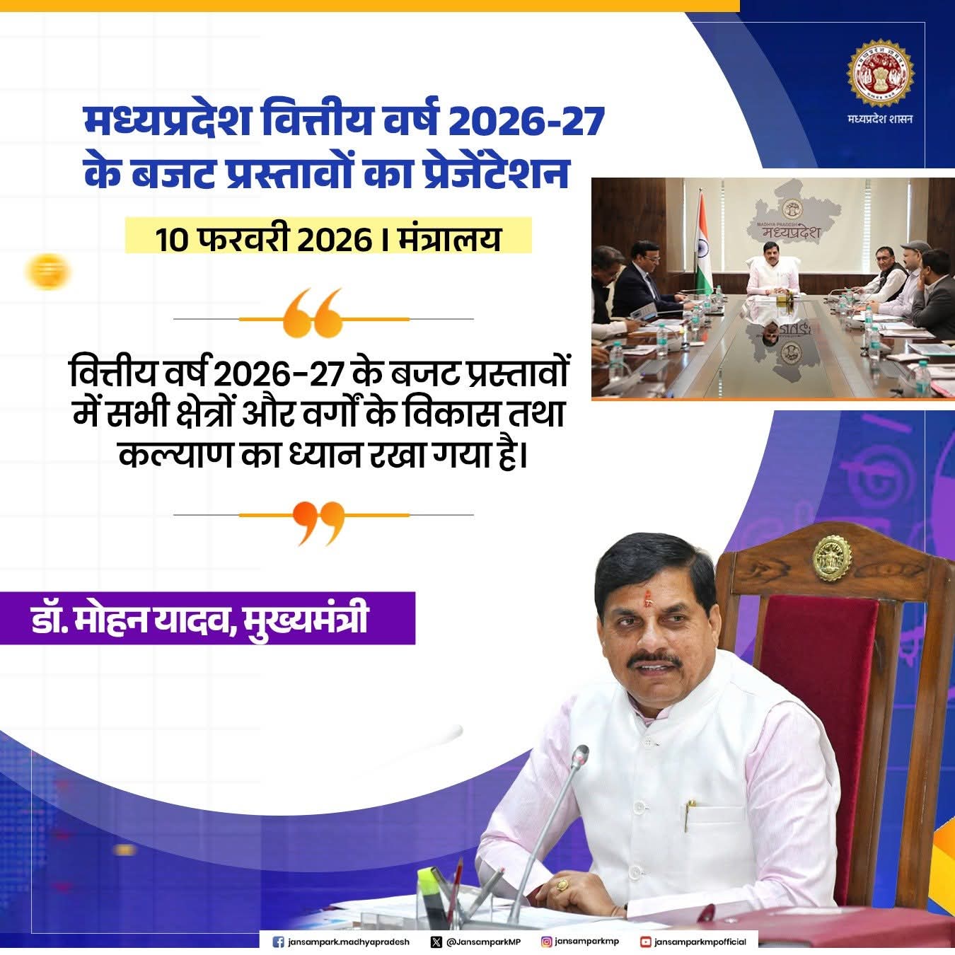 मध्यप्रदेश वित्तीय वर्ष 2026-27 के बजट प्रस्तावों का प्रेजेंटेशन