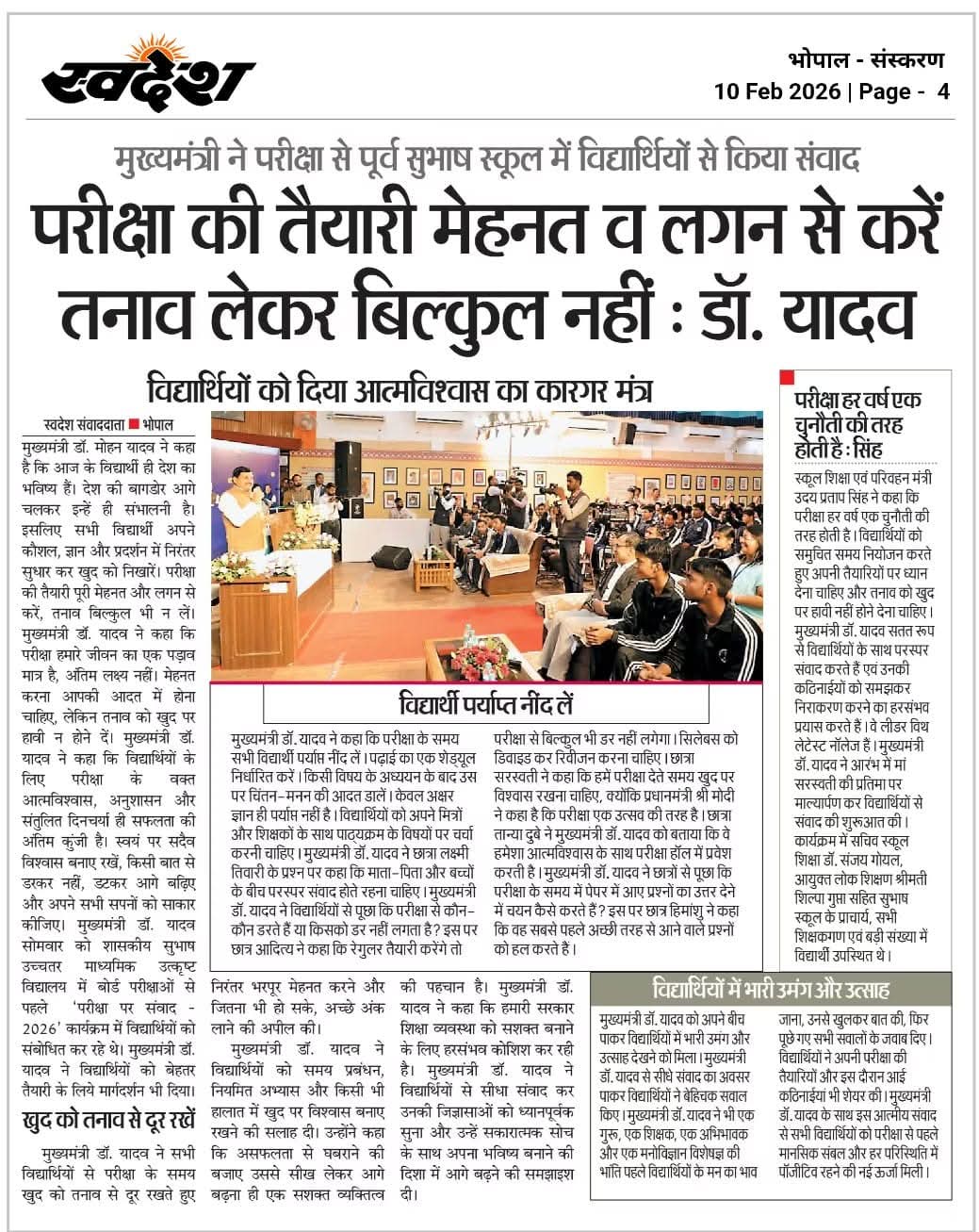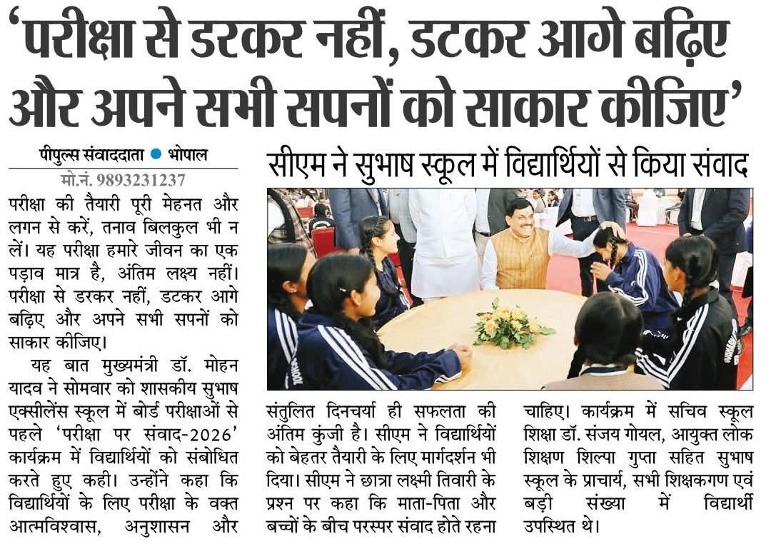 परीक्षा से डरकर नहीं, डटकर आगे बढ़िए और अपने सभी सपनों को साकार कीजिए : सीएम डॉ.मोहन यादव