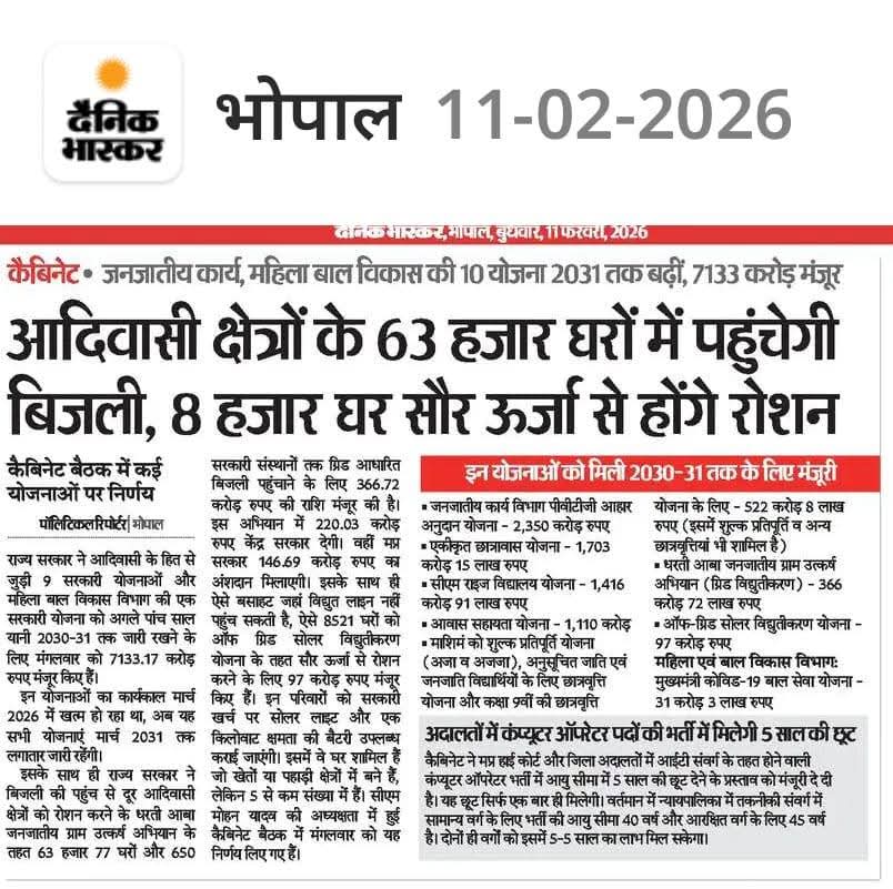 ⏩जनजातीय क्षेत्रों के 63 हजार घरों में पहुंचेगी बिजली