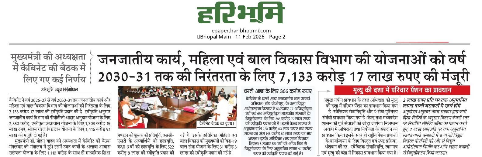 कैबिनेट बैठक में कई योजनाओं पर निर्णय