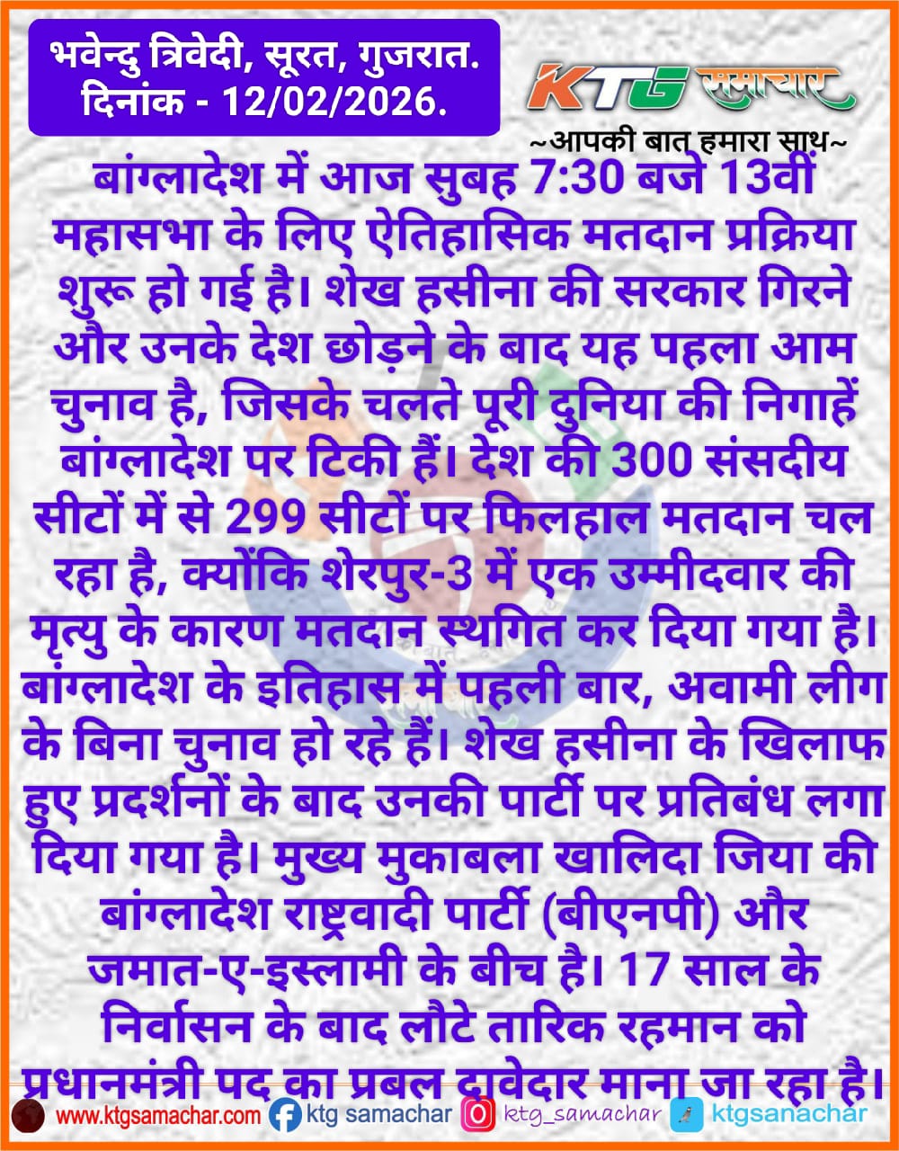 बांग्लादेश में आज सुबह से 13वीं महासभा के लिए ऐतिहासिक मतदान प्रक्रिया शुरू हो गई है।