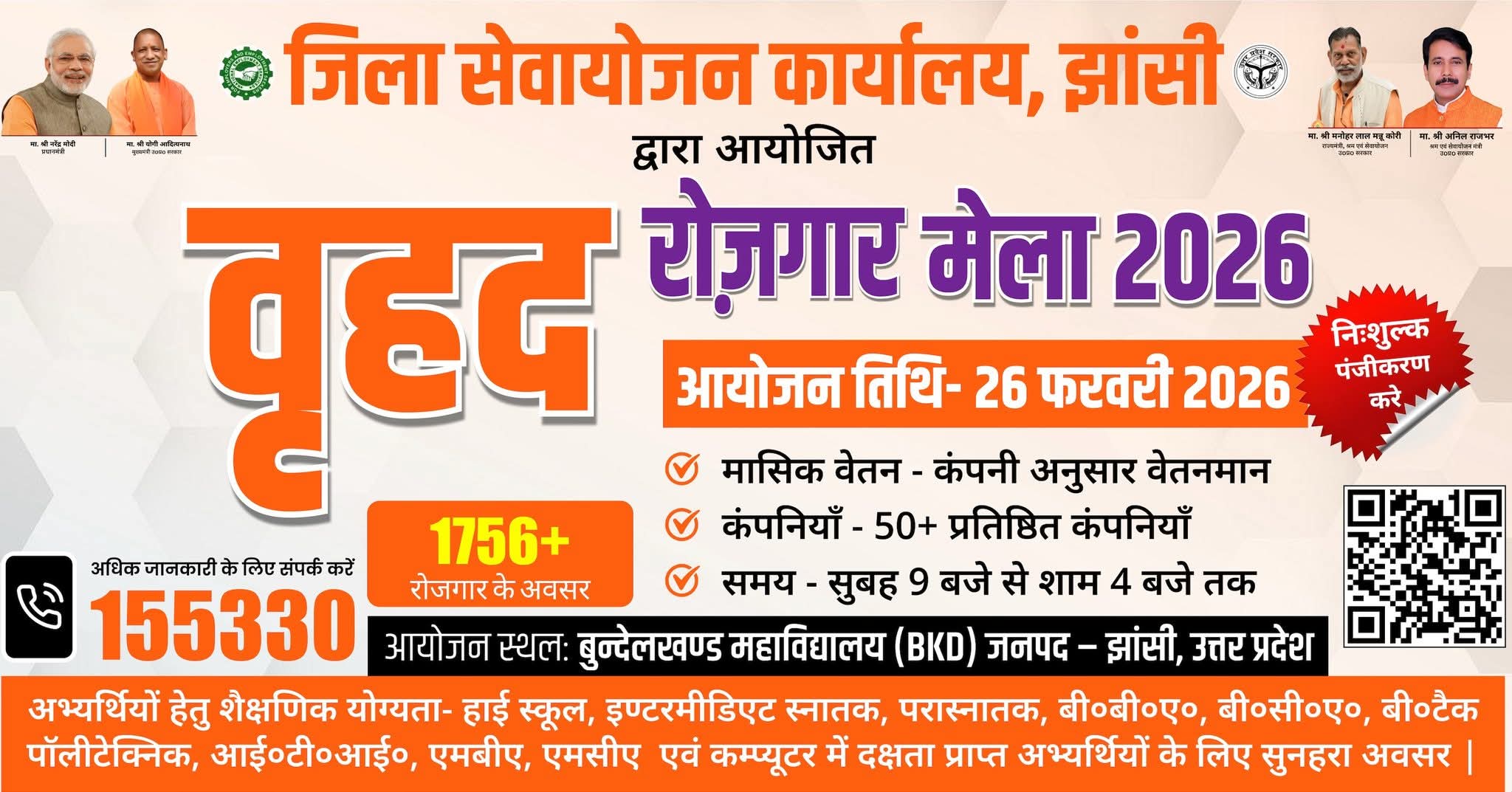 जिला सेवायोजन कार्यालय, झांसी द्वारा आयोजित वृहद रोजगार मेला 2026