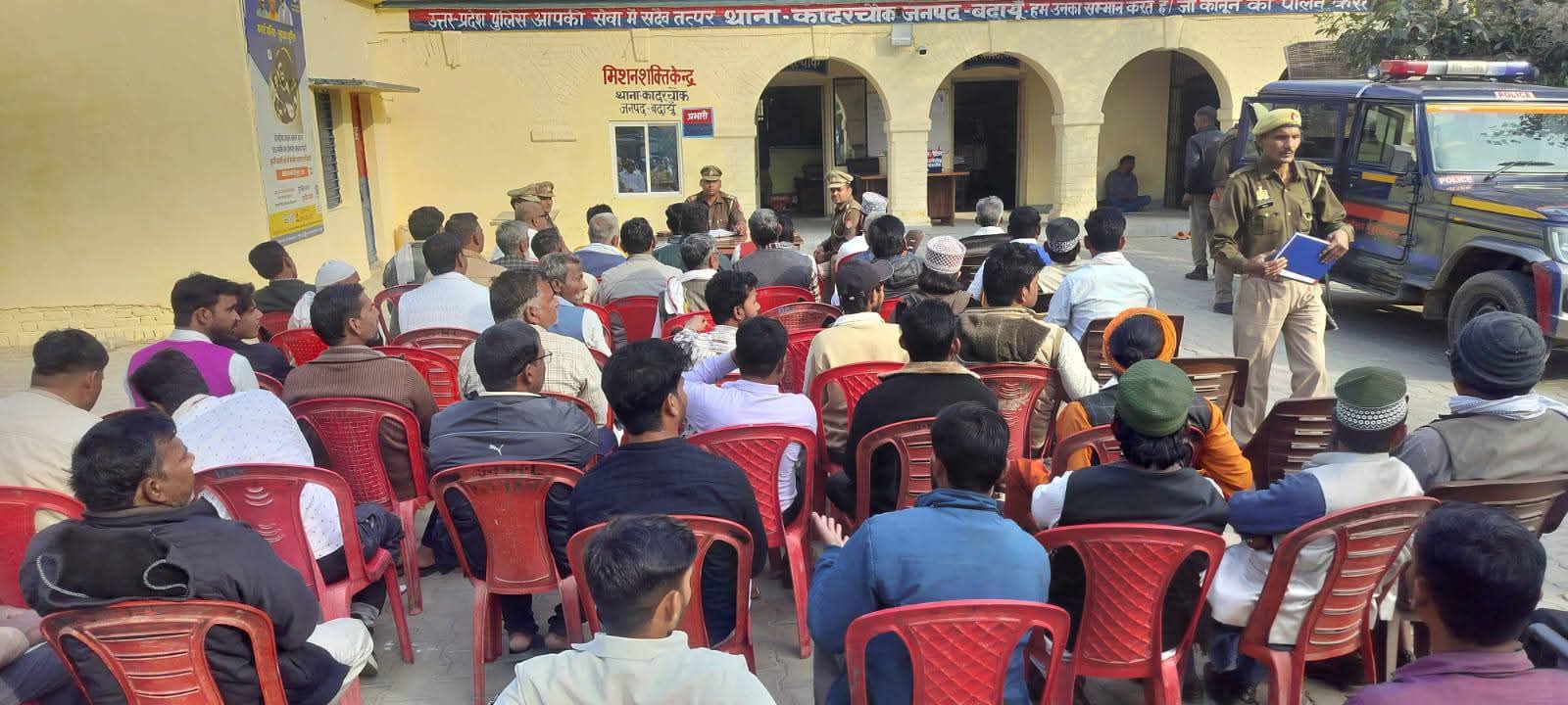 कादरचौक (बदायूं)। आगामी होली और रमजान त्योहारों के मद्देनजर कादरचौक पुलिस व प्रशासन पूरी तरह अलर्ट मोड में है। इसी क्रम में थाना कादरचौक परिसर में क्षेत्र के गणमान्य व्यक्तियों, जनप्रतिनिधियों और धर्मगुरुओं के साथ पीस कमेटी की बैठक आयोजित की गई।