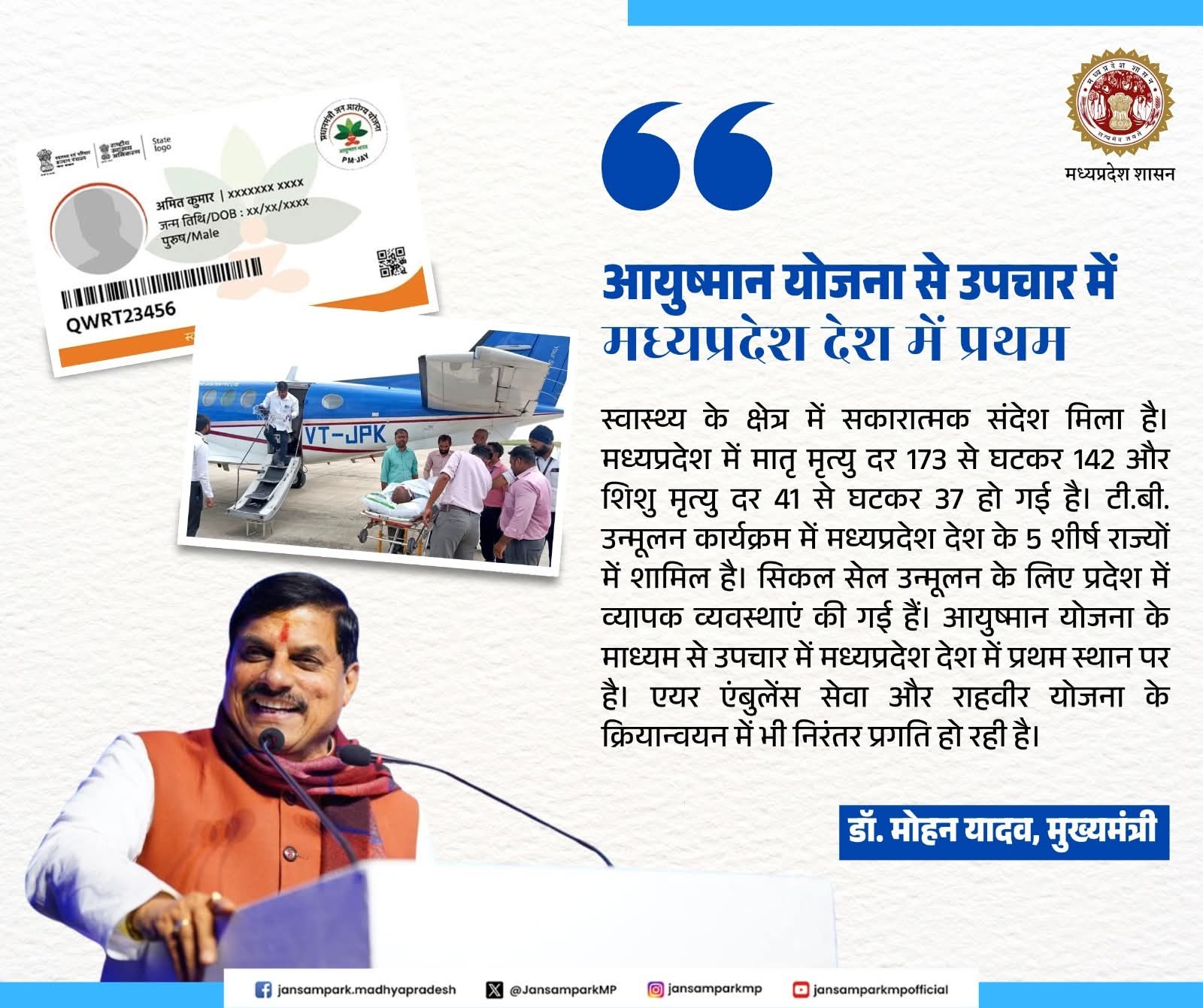 आयुष्मान योजना से उपचार में मध्यप्रदेश देश में प्रथम