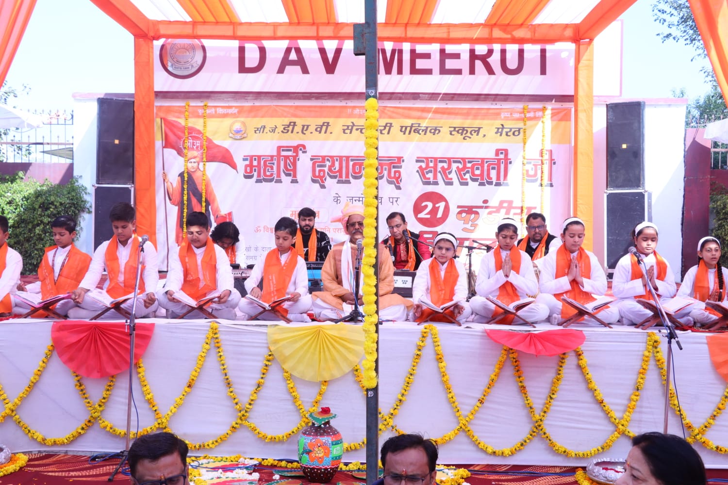 सी.जे.डी.ए.वी. सेन्टेनरी पब्लिक स्कूल, मेरठ में 'महर्षि दयानन्द सरस्वती जी' के जन्मोत्सव पर 21 कुंडीय विशाल यज्ञ अनुष्ठान