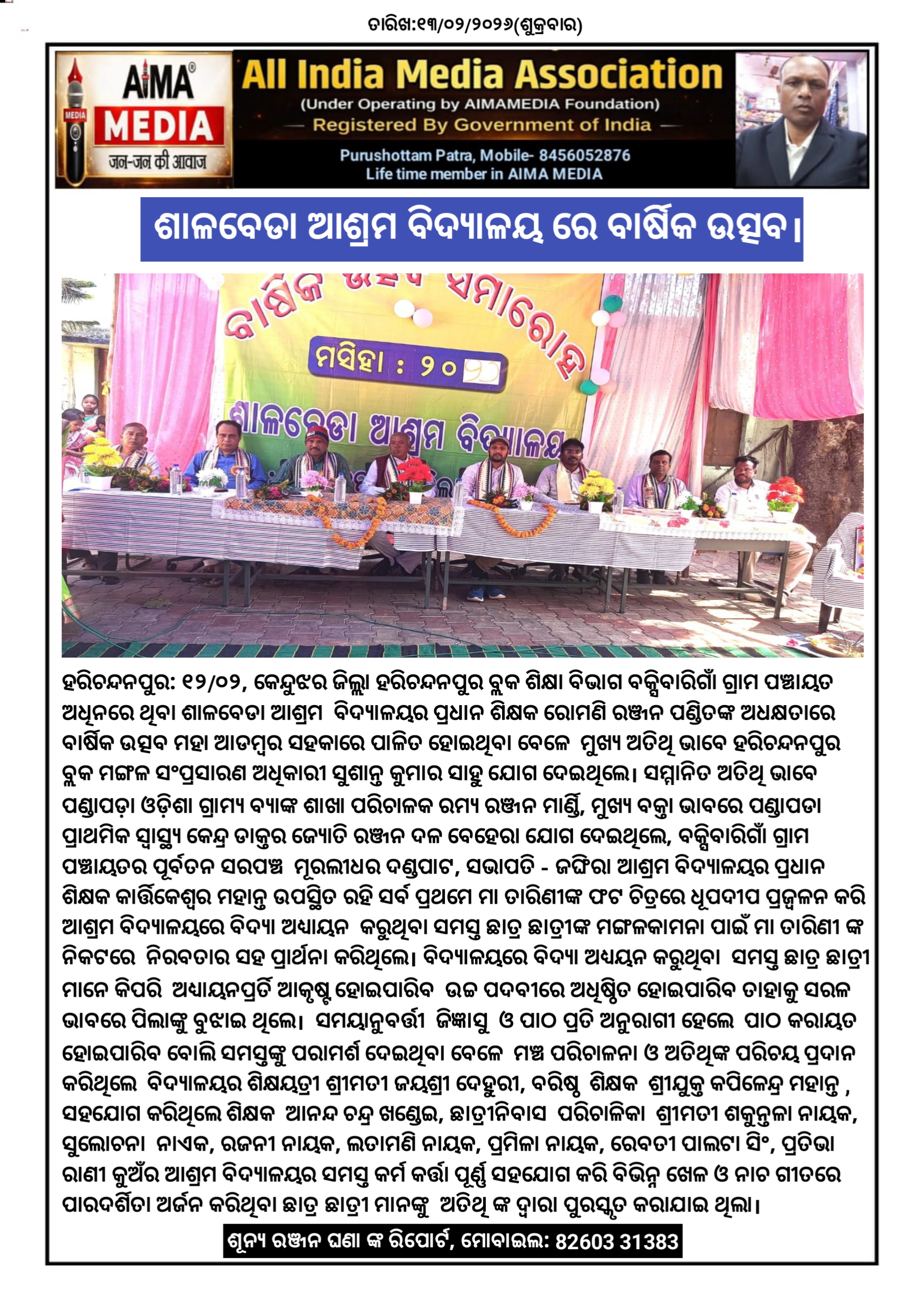 ଶାଳବେଡା ଆଶ୍ରମ ବିଦ୍ୟାଳୟ ରେ ବାର୍ଷିକ ଉତ୍ସବ।