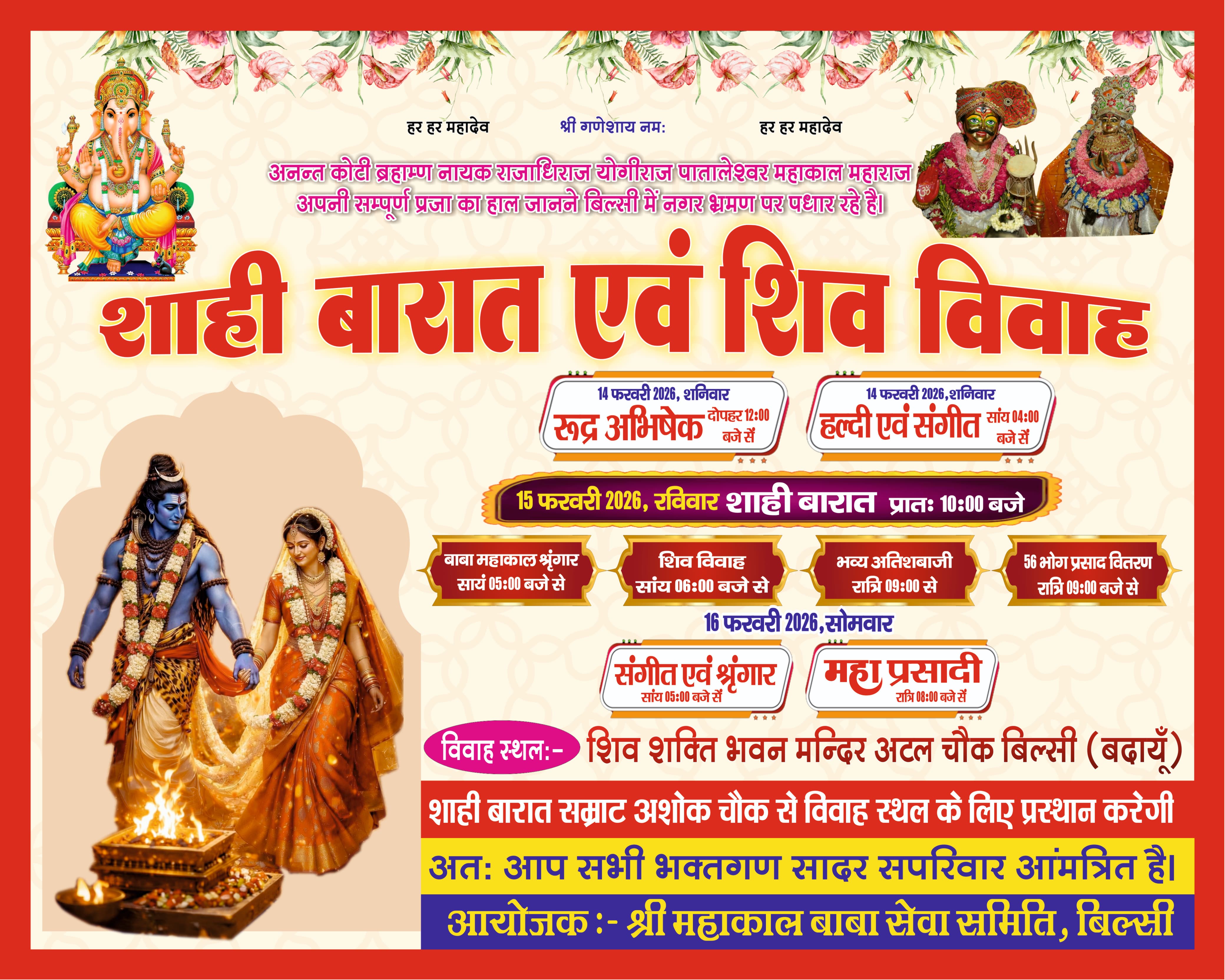 महाशिवरात्रि पर बिल्सी में सजेगी बाबा महाकाल की भव्य शाही बारात, 15 फरवरी को होगा शिव विवाह