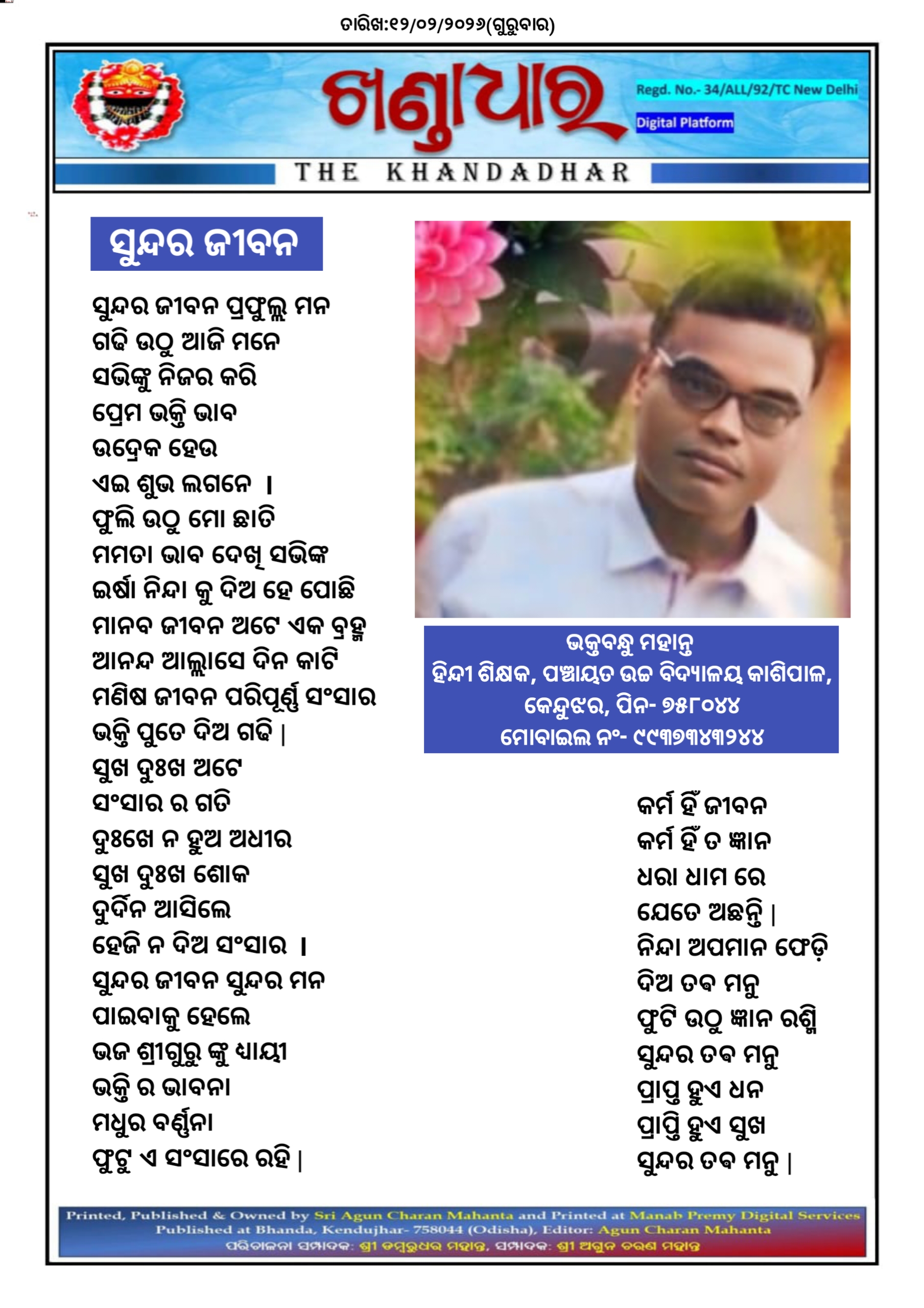 ସୁନ୍ଦର ଜୀବନ - ଭକ୍ତବନ୍ଧୁ ମହାନ୍ତ ଙ୍କ ଦ୍ଵାରା ରଚିତ କବିତା।