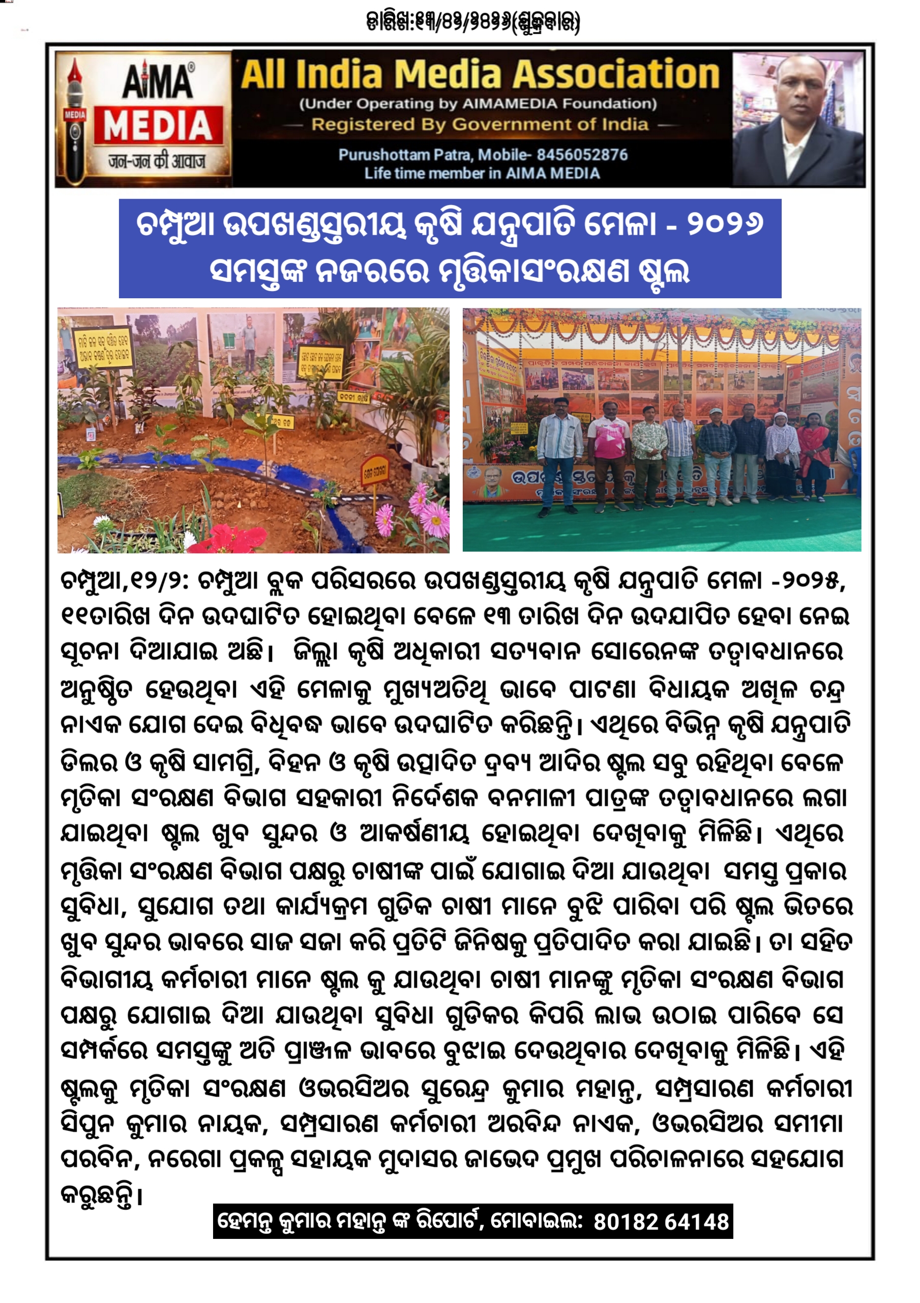 ଚମ୍ପୁଆ ଉପଖଣ୍ଡସ୍ତରୀୟ କୃଷି ଯନ୍ତ୍ରପାତି ମେଳା - ୨୦୨୫, ସମସ୍ତଙ୍କ ନଜରରେ ମୃତ୍ତିକାସଂରକ୍ଷଣ ଷ୍ଟଲ।