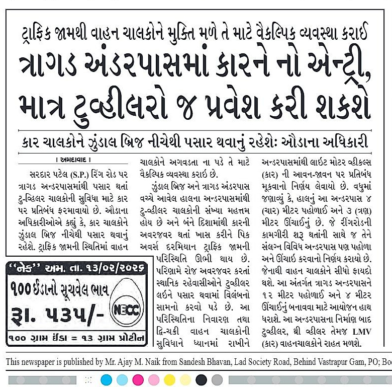Trag અંડર પાસ માં કાર ને not એન્ટ્રી, માત્ર two wheeler Entry
