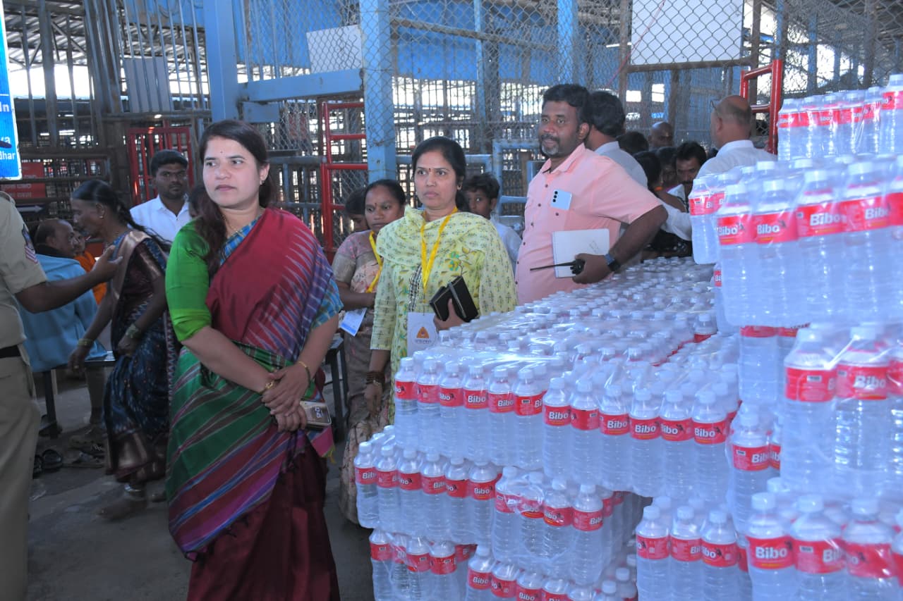 భక్తులతో పాటు క్యూలైన్లో నిలబడి లడ్డు ప్రసాద కౌంటర్ల వద్ద కొనుగోలు జరుగుతున్న విధానం, టోకెన్ వ్యవస్థ, సరఫరా ప్రక్రియలను పరిశీలించిన జిల్లా కలెక్టర్.అదే క్యూలైన్లో భక్తులతో కలిసి వెళ్లి భ్రమరాంబ మల్లికార్జున సమేత స్వామివారి అన్నదాన సత్రంలో సహపంక్తిగా కూర్చొని భోజనం చేస్తూ, భోజన ఏర్పాట్లు, పరిశుభ్రత, వడ్డింపు విధానాలపై భక్తులను అడిగి తెలుసుకున్న జిల్లా కలెక్టర్.