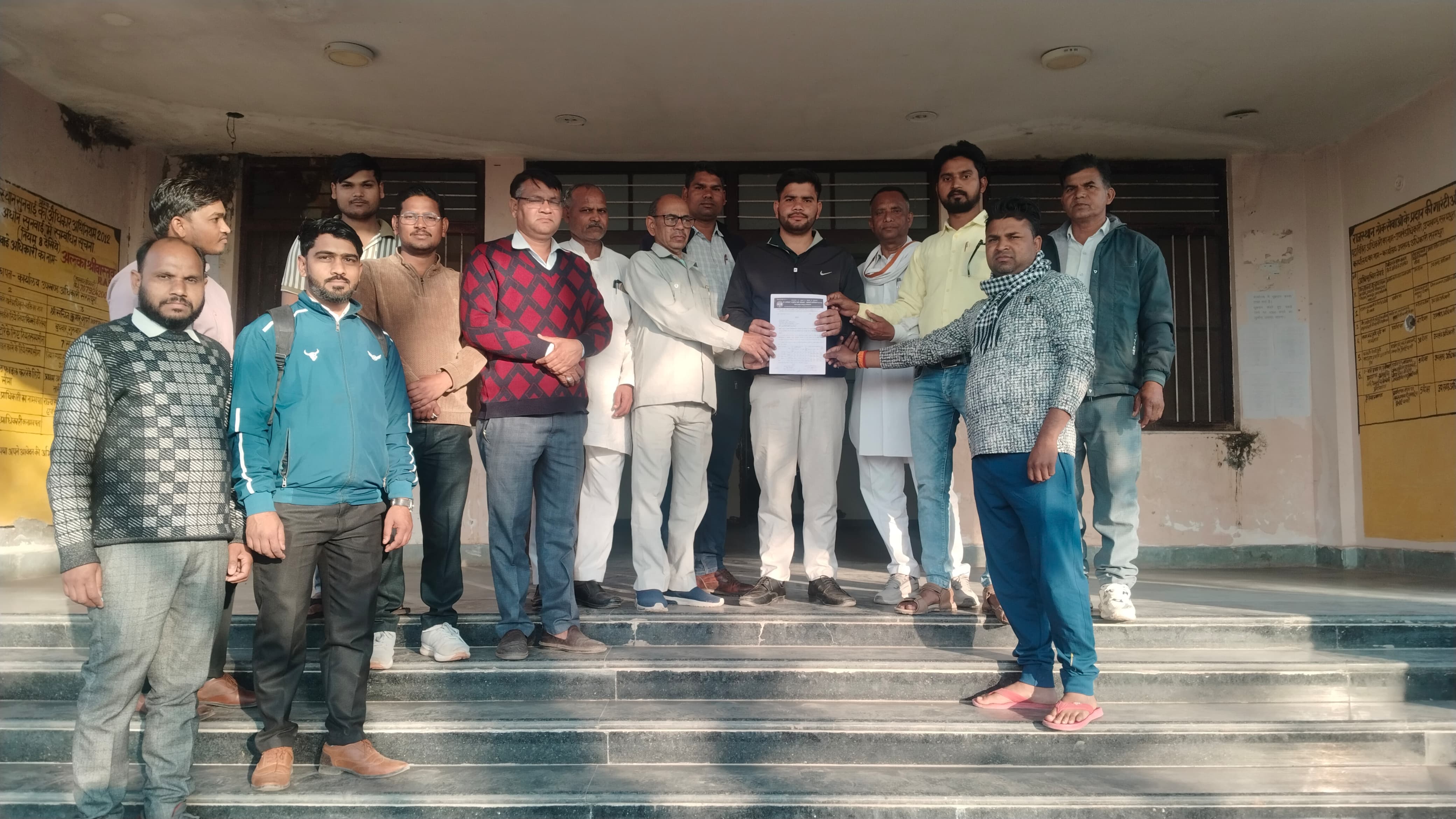 सरमथुरा,धौलपुर में आज उपखंडधिकारी सरमथुरा सुश्री अल्का श्रीवास्तव को यूजीसी के समर्थन में विश्विद्यालय अनुदान आयोग तथा महामहिम राष्ट्रपति को डॉ अंबेडकर अनुसूचित जाति कर्मचारी संगठन अजाक की शाखा सरमथुरा के पदाधिकारी तथा सामाजिक कार्यकर्ता,कर्मचारियों द्वारा ज्ञापन दिया गया जिसमें बताया गया कि यूजीसी संविधान हित तथा देशहित में न्यायपूर्ण कानून है तथा राजस्थान में अन्य भर्तियों में पड़े वैकलोक पदों को भरने के लिए भी ज्ञापन में लिखा है इस मौके पर भगवान दास, कन्हैया लाल(ब्लॉक अध्यक्ष), नरेंद्र सिंह, भगवान लाल ओमप्रकाश, धीरेन्द्र(ब्लॉक महासचिव), नरेश कुमार, शिवसिंह, फौरन सिंह, सूर्यकांत, सुरेन्द्र , गहलोत बैरवा, मुनेश गुरुचरण, जगदीश आदि संगठन साथी उपस्थित रहे