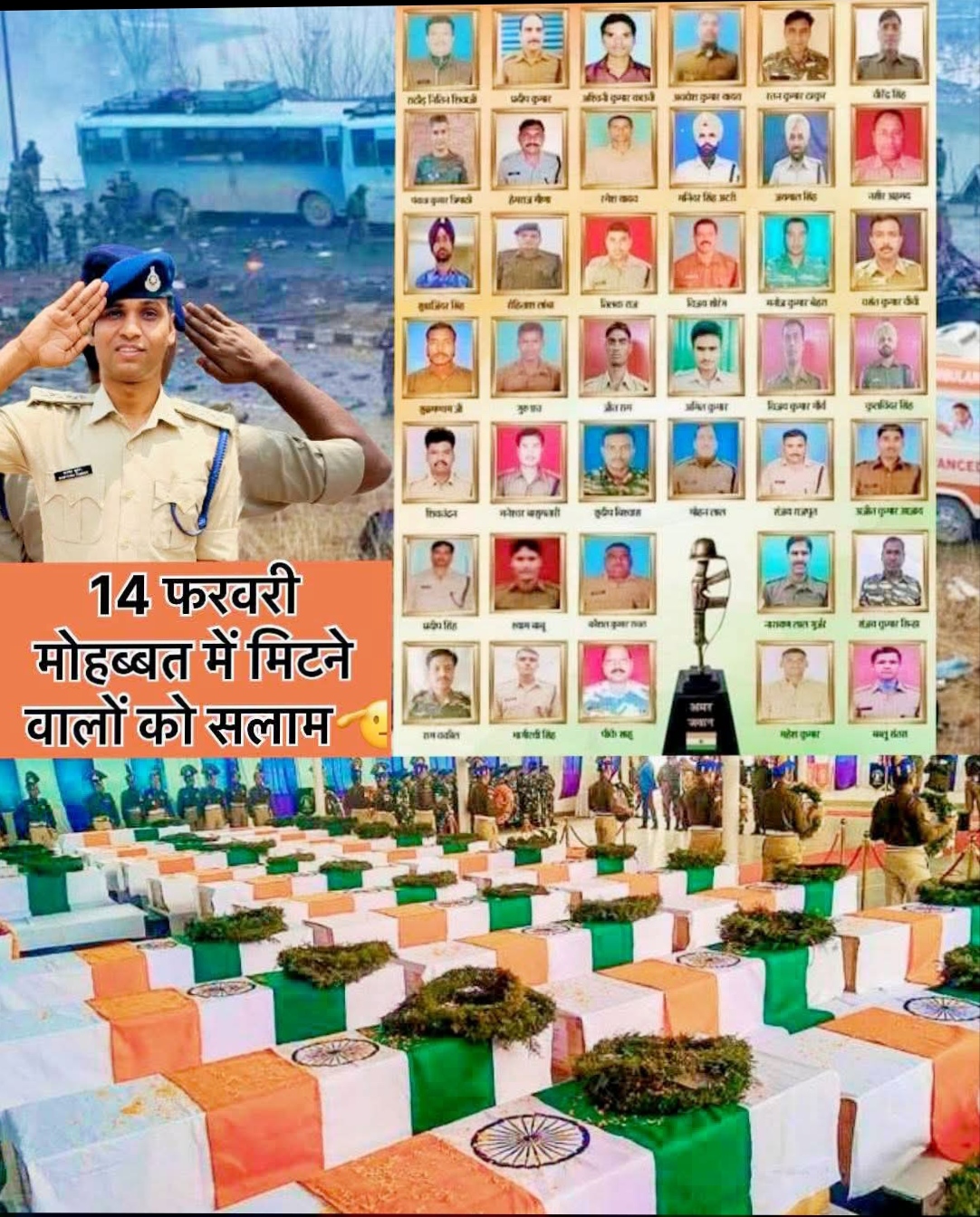 मगर तिरंगे से खूबसूरत कोई कफ़न नहीं होता। मेरे जैसे लाखों DSP सैलूट करेंगे और पूजेंगे अगर मोहब्बत देश से होगी…14 फ़रवरी दोपहर के 3:30 बजे भारत माँ के चालीस बेटे हंसते मुस्कुराते बस में फ़र्ज़ निभाने के लिए जा रहे थे तभी पुलवामा में मोहब्बत का दुश्मन आया और हमारे वीर भाइयों के सपनों को अनंत काल के लिए अमर कर दिया। CRPF वो फोर्स है जिसने शायद भारत माँ की गोद में सबसे ज़्यादा अमर जवान न्यौछावर किए होंगे। आज के दिन देश से प्रेम करने वाले शहीदों को याद करें और उनके चरणों को नमन कर वीरता का आशीर्वाद लें। #crpf #PulwamaMartyrs #Shaheed #जयहिंद #JayJawanJayKisan