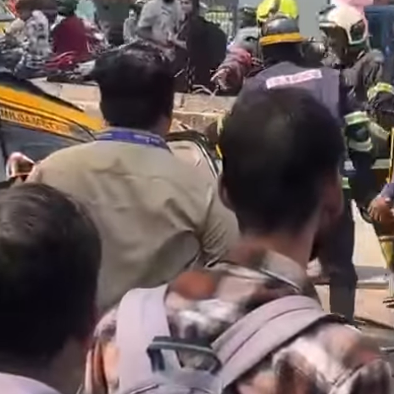 A metro slab reportedly fell on an auto rickshaw and a car opposite Johnson & Johnson, Mulund West.