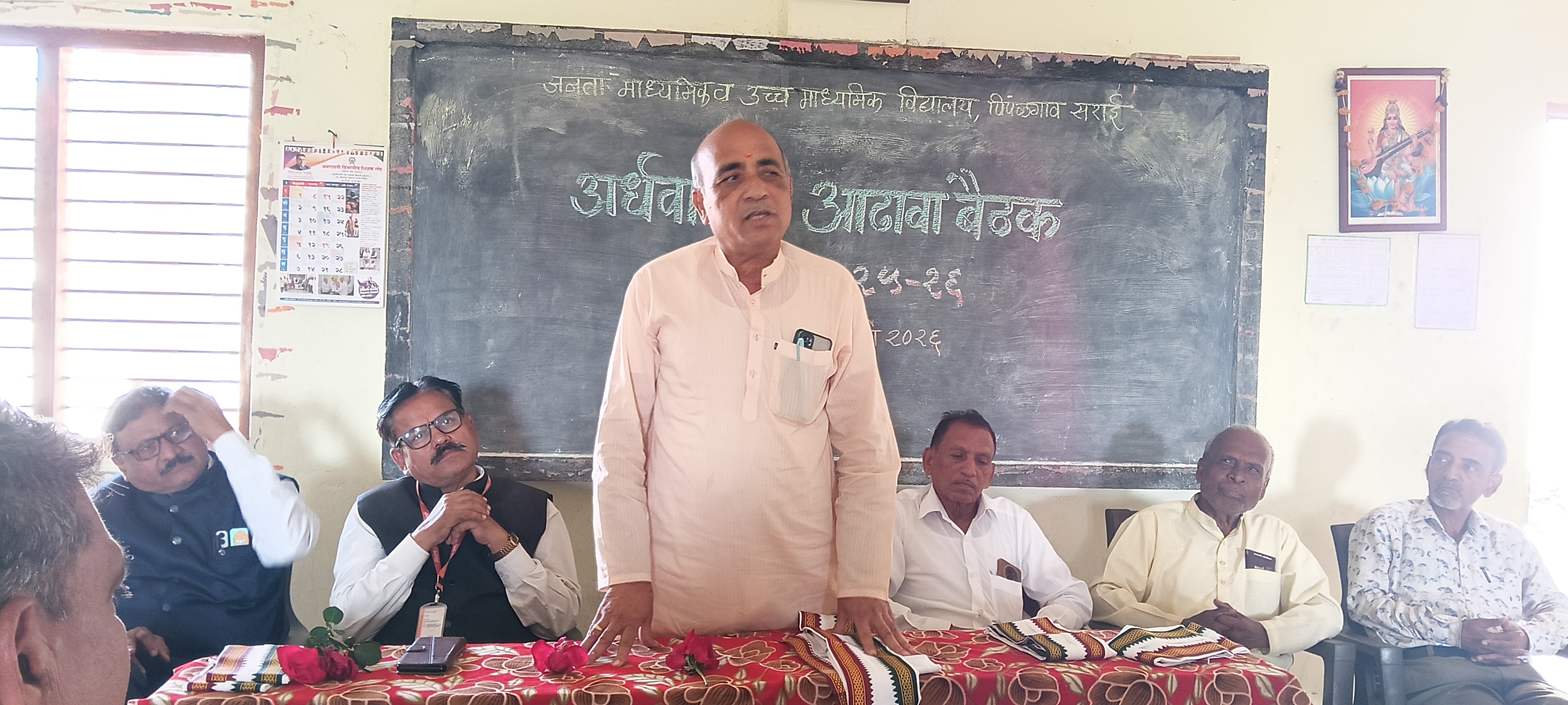 जनता माध्यमिक व उच्च माध्यमिक विद्यालय पिंपळगाव सराई येथे शिक्षण प्रसारक मंडळ चिखलीच्या निरीक्षण समितीची भेट तसेच अर्धवार्षिक आढावा बैठक उत्साहपूर्ण वातावरणात पार पडली. शैक्षणिक वर्षाच्या पहिल्या सत्रात झालेल्या विविध उपक्रमांचा सविस्तर आढावा या बैठकीत घेण्यात आला.