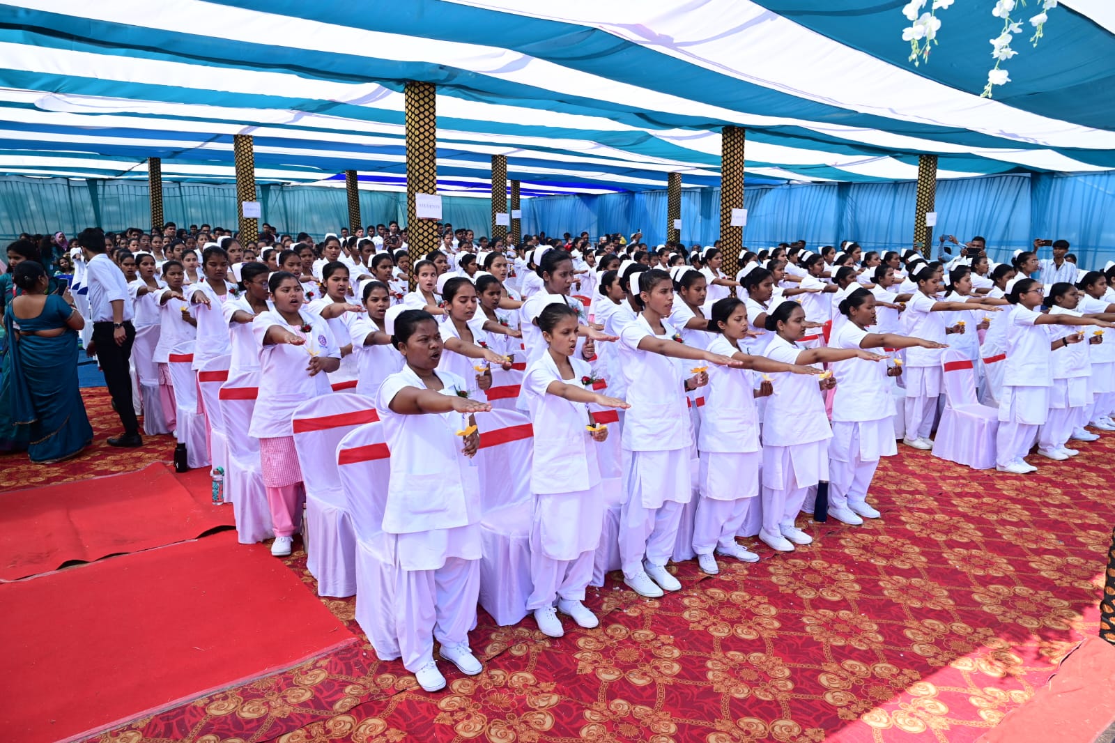 विशिष्ट अतिथि – श्री मंज़ूर अहमद अंसारी (एडवाइजर-मेदंता हॉस्पिटल), ने कहा कि मेरे देश की सभी नर्सों के लिए, मैं आपके पेशे के बारे में जानकर सम्मान और गर्व महसूस करता हूँ और आशा करता हूँ कि आप उत्कृष्टता के उच्चतम मानकों को बनाए रखेंगे । आपके अथक प्रयास और करुणा हर दिन अनगिनत व्यक्तियों के जीवन में गहरा बदलाव लाते हैं Iनर्सें चिकित्सा पेशे की गुमनाम हीरो हैं, जो ज़रूरतमंदों को अटूट समर्पण और करुणा के साथ देखभाल और आराम प्रदान करती हैं। उनके अथक प्रयासों पर अक्सर ध्यान नहीं दिया जाता, लेकिन दूसरों के जीवन पर उनका प्रभाव अथाह है।श्रीमती जीनत कौसर-सेक्रेटरी, हाजी अब्दुर रज्ज़ाक एजुकेशनल सोसाइटी* ने कहा कि मरीजों की भावनाओं और जरूरतों को समझना और उनके प्रति दयालु होना। अपने काम और नैतिक मूल्यों के प्रति सच्चा और भरोसेमंद होना। मरीजों, डॉक्टरों और अन्य कर्मचारियों के साथ स्पष्ट रूप से संवाद करना। मुश्किल और तनावपूर्ण स्थितियों में शांत और संयमित रहना। आपातकालीन स्थितियों में त्वरित और सही निर्णय लेना। स्वास्थ्य टीम के साथ मिलकर प्रभावी ढंग से काम करना। समय का पालन करना और पेशेवर मानकों को बनाए रखना। छोटी से छोटी बारीकियों पर ध्यान देना, जो रोगी की सुरक्षा के लिए महत्वपूर्ण है। बदलती परिस्थितियों और कार्यभार के अनुसार ढलना। शारीरिक और भावनात्मक रूप से लंबी और थकाऊ शिफ्ट्स को संभालना। ये गुण एक नर्स को न केवल कुशल देखभाल प्रदान करने में मदद करते हैं, बल्कि मरीजों के साथ विश्वास का रिश्ता बनाने और एक सकारात्मक स्वास्थ्य सेवा वातावरण बनाने में भी महत्वपूर्ण भूमिका निभाते हैं। मौके पर निदेशक डॉ० शाहीन कौशर, डॉ० नाजनीन कौशर, , अबू नसर बहाउद्दीन अंसारी, प्राचार्या श्रीमती विनिशा बांसरियार] उप-प्राचार्य-बिक्रम मजुमदार, ज्योति ग्लोरिया, शोएब अख्तर, बिनीता खलखो, मनीषा वर्मा, वर्षा कुमारी, रेशमा लकरा, सुनीता कुमारी, कीर्ति शर्मा, अल्मा गीध, नीमा वंदना, रश्मि सोरेंग, यस्मिन जहाँ, जेनिफ़र शालिनी, शालुता संगीता, पल्लाबी पांजा, अनामिका लाकर, केया महतो, बिंदिया कुमारी, सुमाना सरकार, वाशु राठोर, लीना लकड़ा, मो० कलाम अंसारी, सादिक अंसारी, हाजी मंसूर अंसारी, प्रियातोश रंजन, शशि कुमार, आंचल सिंह एवं कॉलेज के सभी शिक्षकगण तथा कर्मचारीगण सहित अभिभावक एवं अन्य लोग उपस्थित थे I