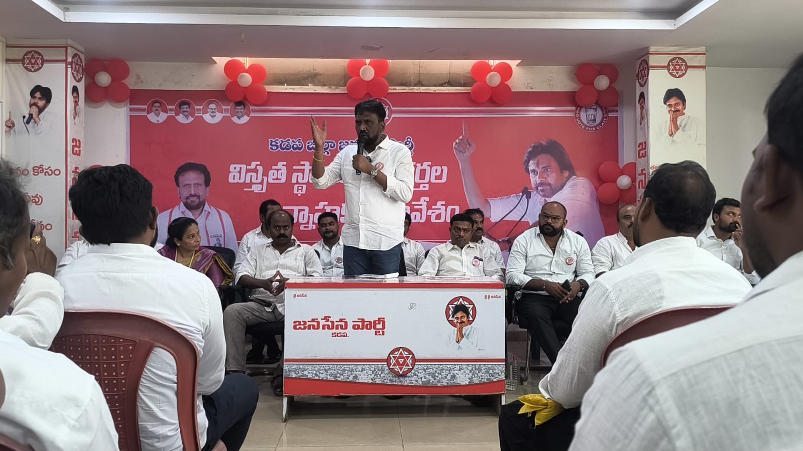 కడప జిల్లా కేంద్రంలో ఈ రోజు నిర్వహించిన "కడప జిల్లా జనసేన పార్టీ విస్తృత స్థాయి కార్యకర్తల సన్నాహక సమావేశం" జిల్లా రాజకీయాల్లో ఒక కీలక మైలురాయిగా నిలిచింది. *జనసేన పార్టీ ఉమ్మడి కడప జిల్లా కోఆర్డినేటర్ మరియు కడప అసెంబ్లీ ఇంచార్జ్ గౌరవ శ్రీ సుంకర శ్రీనివాస్ గారి* అధ్యక్షతన జిల్లా జనసేన పార్టీ కార్యాలయంలో ఘనంగా జరిగిన ఈ సమావేశానికి జిల్లా నలుమూలల నుంచి పెద్ద సంఖ్యలో నాయకులు, కార్యకర్తలు, వీరమహిళలు హాజరయ్యారు. కార్యాలయం మొత్తం జనసేన నినాదాలతో, కార్యకర్తల ఉత్సాహంతో ఉప్పొంగిపోయింది.