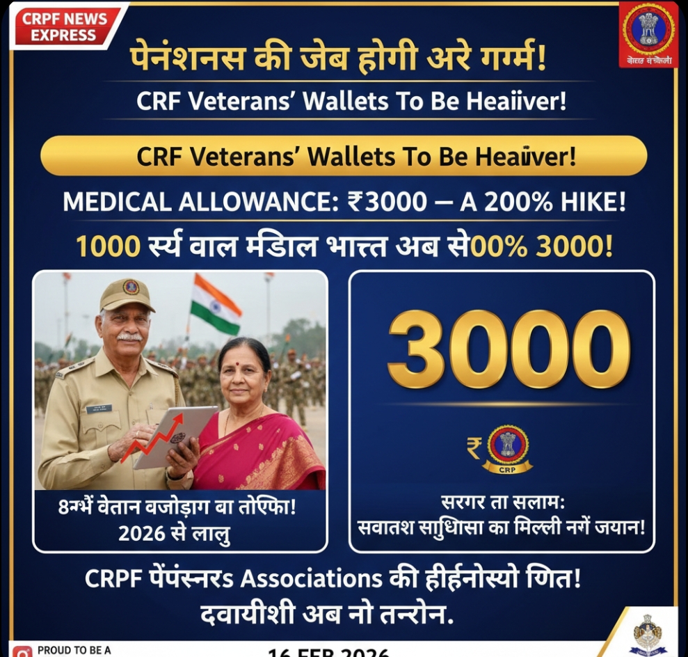 ​"8वें वेतन आयोग का तोहफा: CRPF के पूर्व सैनिकों की जेब में अब हर महीने आएंगे 3000 रुपये मेडिकल फंड!"