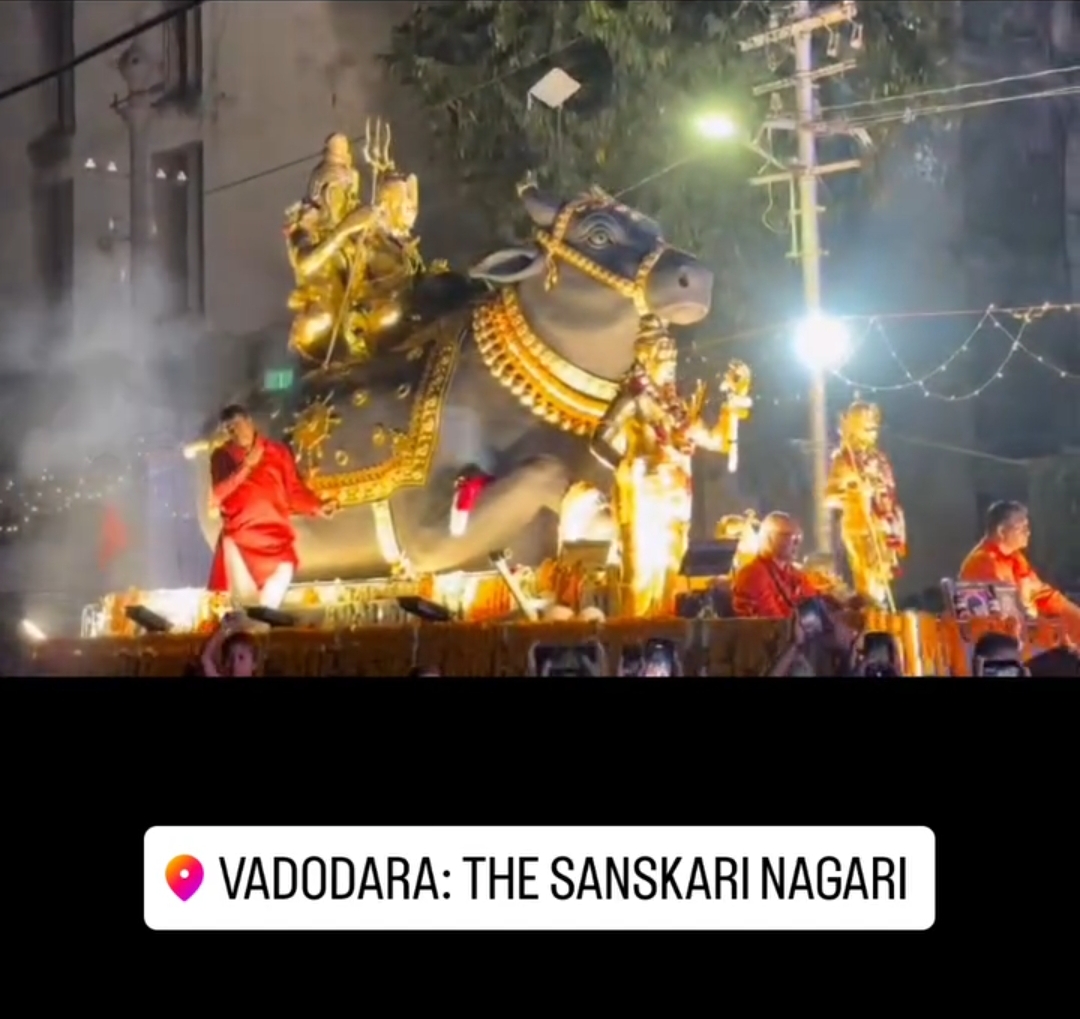 🕉️મહાશિવરાત્રીના પવિત્ર અવસરે વડોદરા શહેરમાં ખૂબ જ ભક્તિપૂર્ણ અને ભવ્ય રીતે “શિવજી કી સવારી” ની શોભાયાત્રા જામ્યા માર્ગો પર નીકળી હતી. આ પરંપરાગત યાત્રા દર વર્ષે રણમુક્તેશ્વર મહાદેવ મંદિરે ઉગમ પામીને શહેરના વિવિધ મુખ્ય માર્ગો પર જઈ **સુરસાગર તળાવ પર મહાઆરતી કરિને સમાપ્ત થઈ હતી. કેન્દ્ર ગૃહમંત્રી અમિત શાહે 2026ના મહાશિવરાત્રીએ વડોદરામાં યોજાયેલા મુખ્ય કાર્યક્રમો અને મહાઆરતીમાં હાજરી આપી. તેઓ સોનું–મઢાયેલું શિવા પ્રતિક સ્વર્ગાસગરમાં ઉભેલી પ્રતિમા સામે આરતી માટે ઉપસ્થિત રહ્યા અને ભક્તો સાથે આ પૂર્ણાહુતિમાં સામેલ થયા. 🔱શોભાયાત્રા અને આરતીમાં હજારો ભક્તોએ ભાગ લીધો અને શહેરનું વાતાવરણ “શિવમય” બની ગયું હતું.� 🚓 સુરક્ષા અને તૈયારી આ વર્ષે જામ અને ભીડ નિયંત્રણ માટે હજારો પોલીસ કર્મચારીઓ સાથે સાથે સુરક્ષા વ્યવસ્થા કડક રાખવામાં આવી હતી, અને VMC દ્વારા યાત્રા માર્ગો પર ટ્રાફિક વ્યવસ્થાપન પણ બાંધવામાં આવ્યું હતું.� 🔱🕉️શોભાયાત્રા શું છે? “શિવજી કી સવારી”માં શિવજી અને તેમના પરિવાર (પરવતી, ગણેશ, કાર્તિકેય) સાથે નંદી પર બેસેલી પ્રતિમાઓ શહેરના મુખ્ય માર્ગો પરથી પસાર થાય છે, સાથે જ ભક્તો દ્વારા “હર હર મહાદેવ”ના નાદથી મહત્ત્વ ઉભું થાય છે—જે મહાશિવરાત્રીને અનોખા ભક્તિભાવ સાથે ઉજવણી બનાવે છે.
