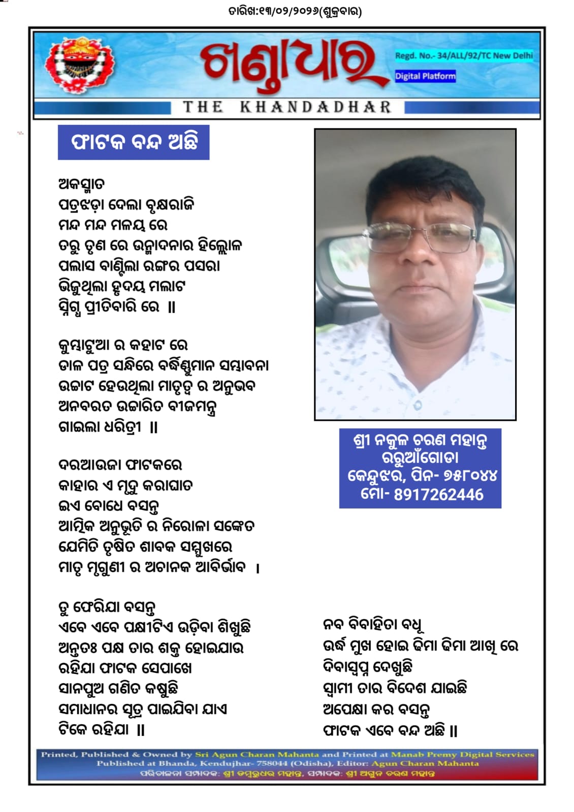 ଫାଟକ ବନ୍ଦ ଅଛି - ନକୁଳ ଚରଣ ମହାନ୍ତ ଙ୍କ ଦ୍ଵାରା ରଚିତ କବିତା।