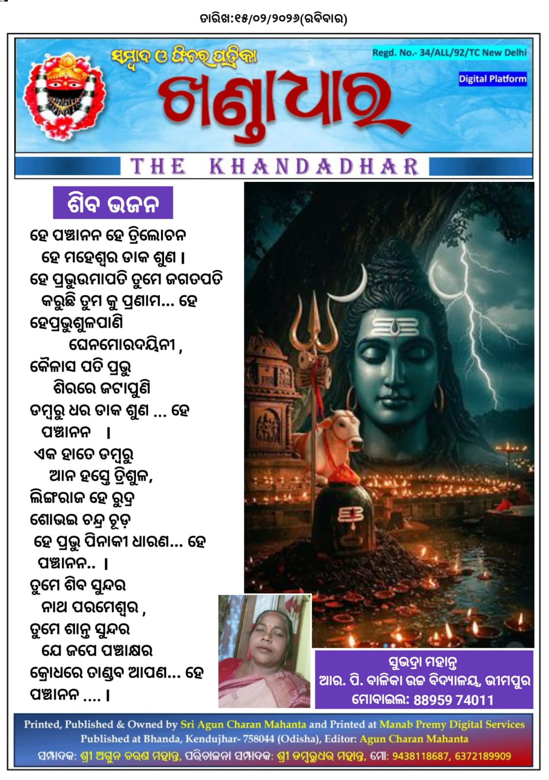ଶିବ ଭଜନ - ସୁଭଦ୍ରା ମହାନ୍ତ ଙ୍କ ଦ୍ଵାରା ରଚିତ କବିତା।