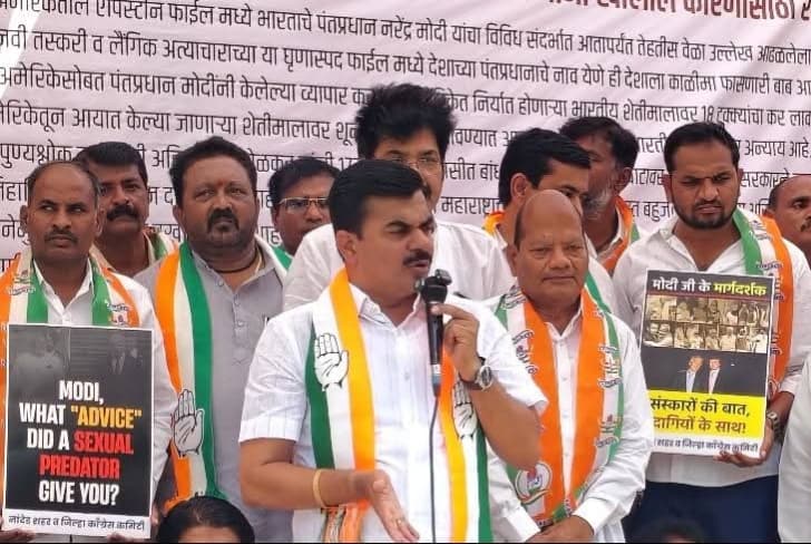 नांदेड जिल्हाधिकारी कार्यालयासमोर आज संतापाचा ज्वालामुखी उसळला! “मोदी–एपस्टीन भाई भाई”, “मोदी राजीनामा द्या” अशा आक्रमक घोषणांनी संपूर्ण परिसर दणाणून गेला आणि सत्तेच्या अहंकाराला जनतेने थेट इशारा दिला. देशाच्या नैतिकतेचा गळा घोटणाऱ्या पंतप्रधान नरेंद्र मोदी यांनी तात्काळ पदाचा राजीनामा द्यावा, या मागणीसाठी काँग्रेस पक्षाच्या कार्यकर्त्यांनी नांदेड येथे एकदिवसीय धरणे आंदोलन करत केंद्र सरकारविरोधात तीव्र संताप व्यक्त केला.