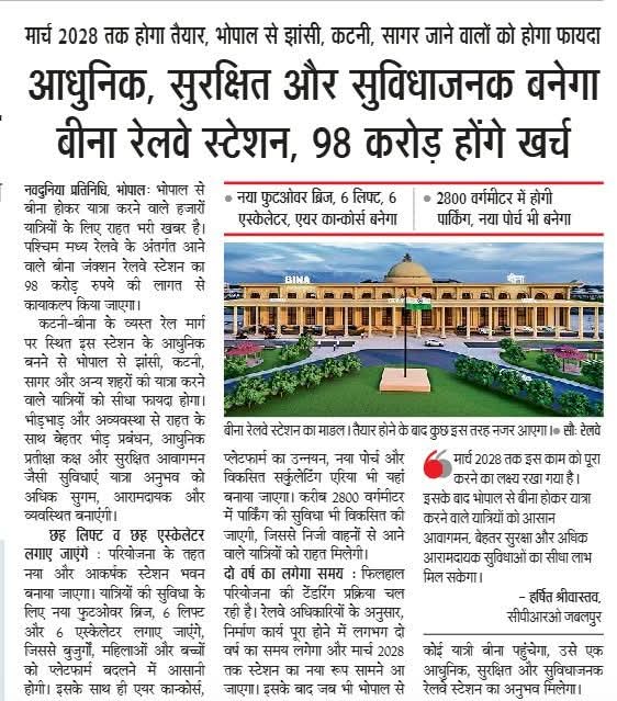 आधुनिक, सुरक्षित और सुविधाजनक बनेगा बीना रेलवे स्टेशन