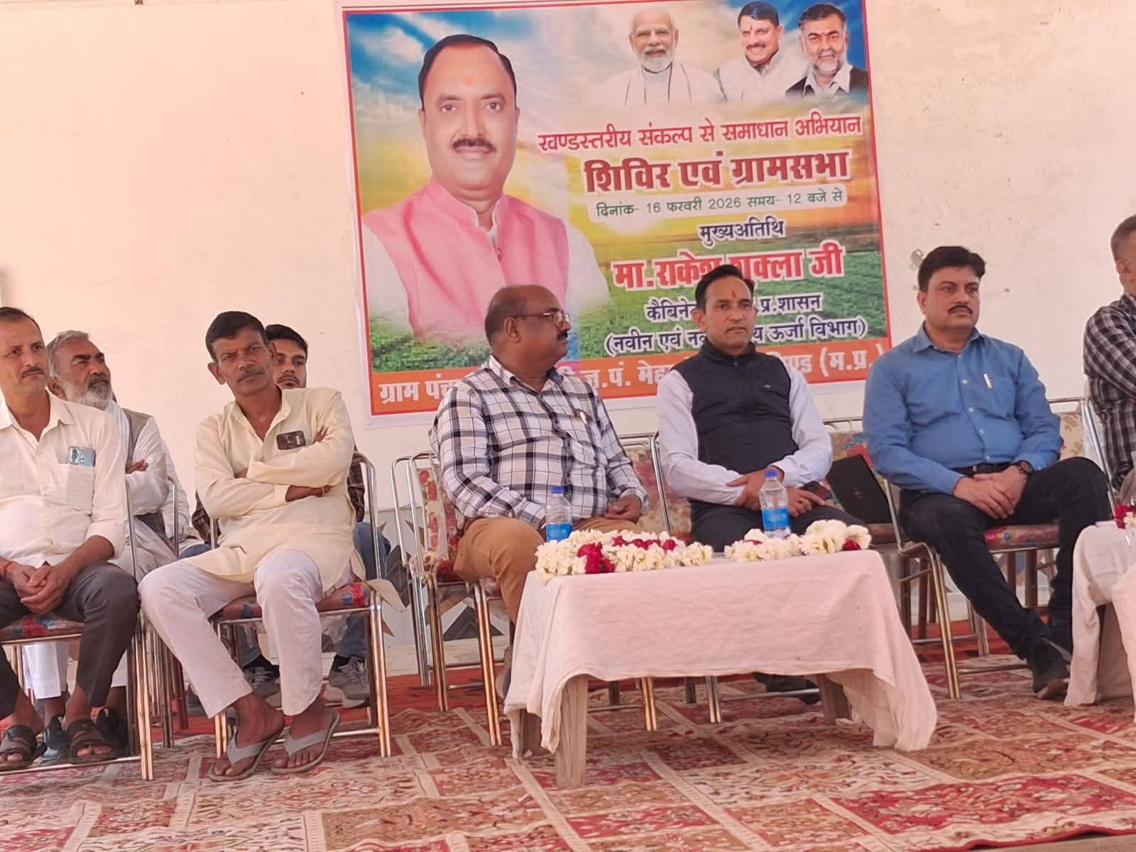 संकल्प से समाधान अभियान के तहत आज जनपद पंचायत मेहगांव की ग्राम पंचायत मेहदौली में खण्ड स्तरीय शिविर एवं ग्रामसभा का आयोजन किया गया। जिसमें आमजनों की समस्याओं और शासन की योजनाओं का लाभ देने हेतु आवेदन प्राप्त किए गए। साथ ही कुछ पात्र हितग्राहियों की समस्याओं का मौके पर ही निराकरण किया गया।