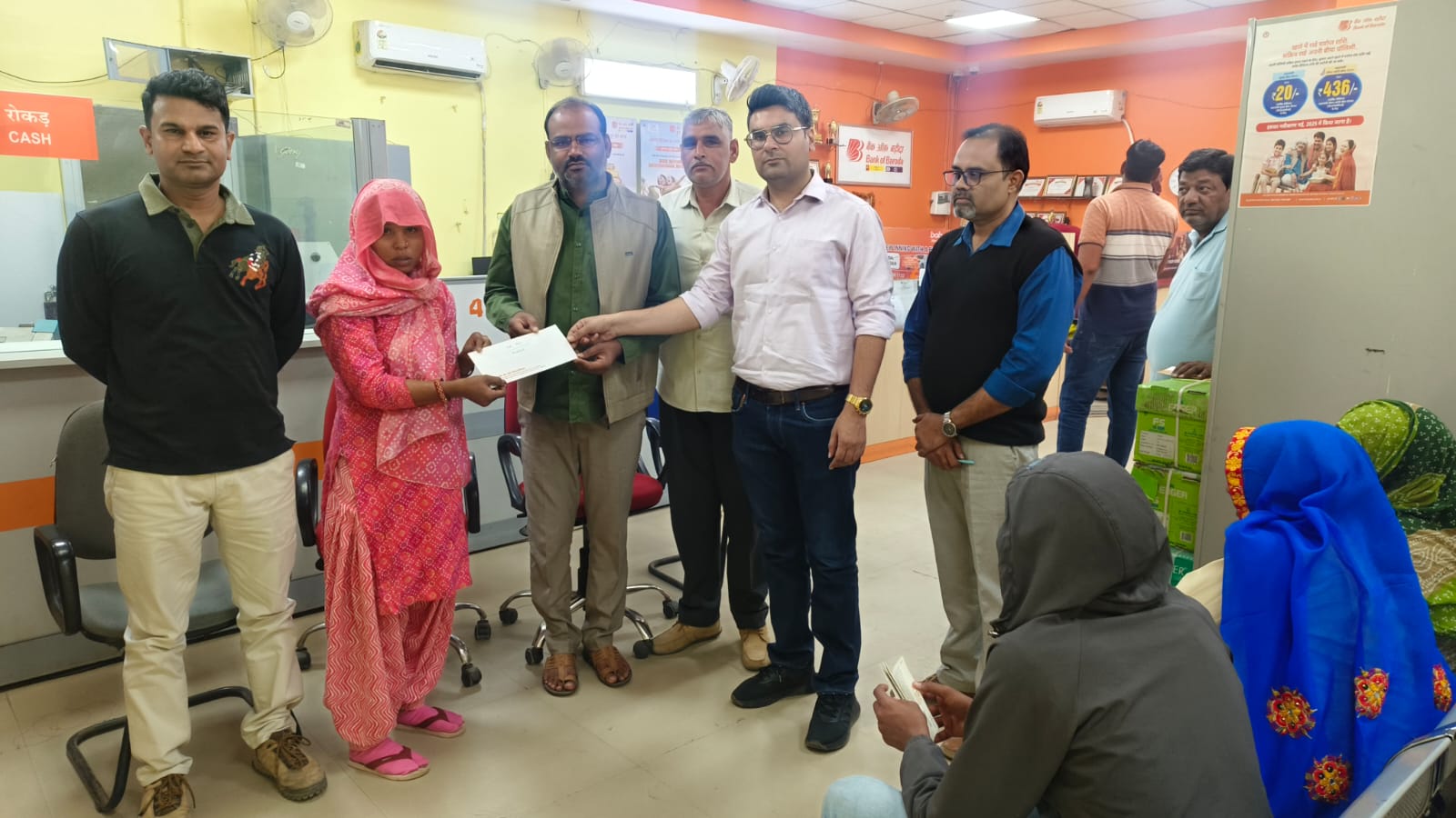 सिंघाना स्थित बैंक ऑफ बड़ौदा शाखा में प्रधानमंत्री जीवन ज्योति योजना के तहत दिया दो लाख राशि का चैक