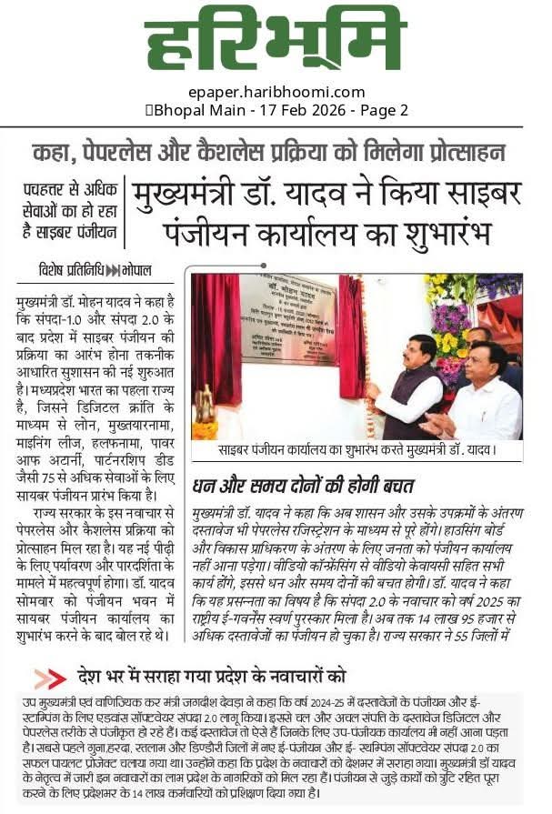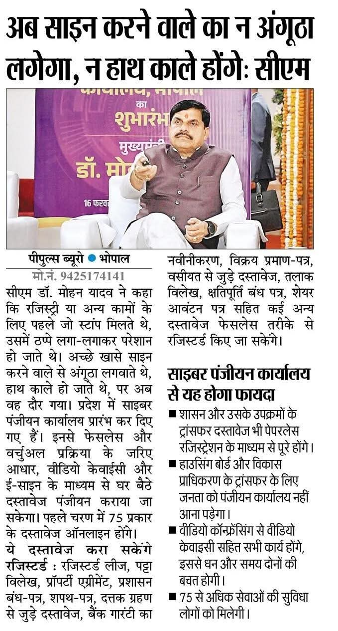 मुख्यमंत्री डॉ मोहन यादव ने किया साइबर पंजीयन कार्यालय का शुभारंभ