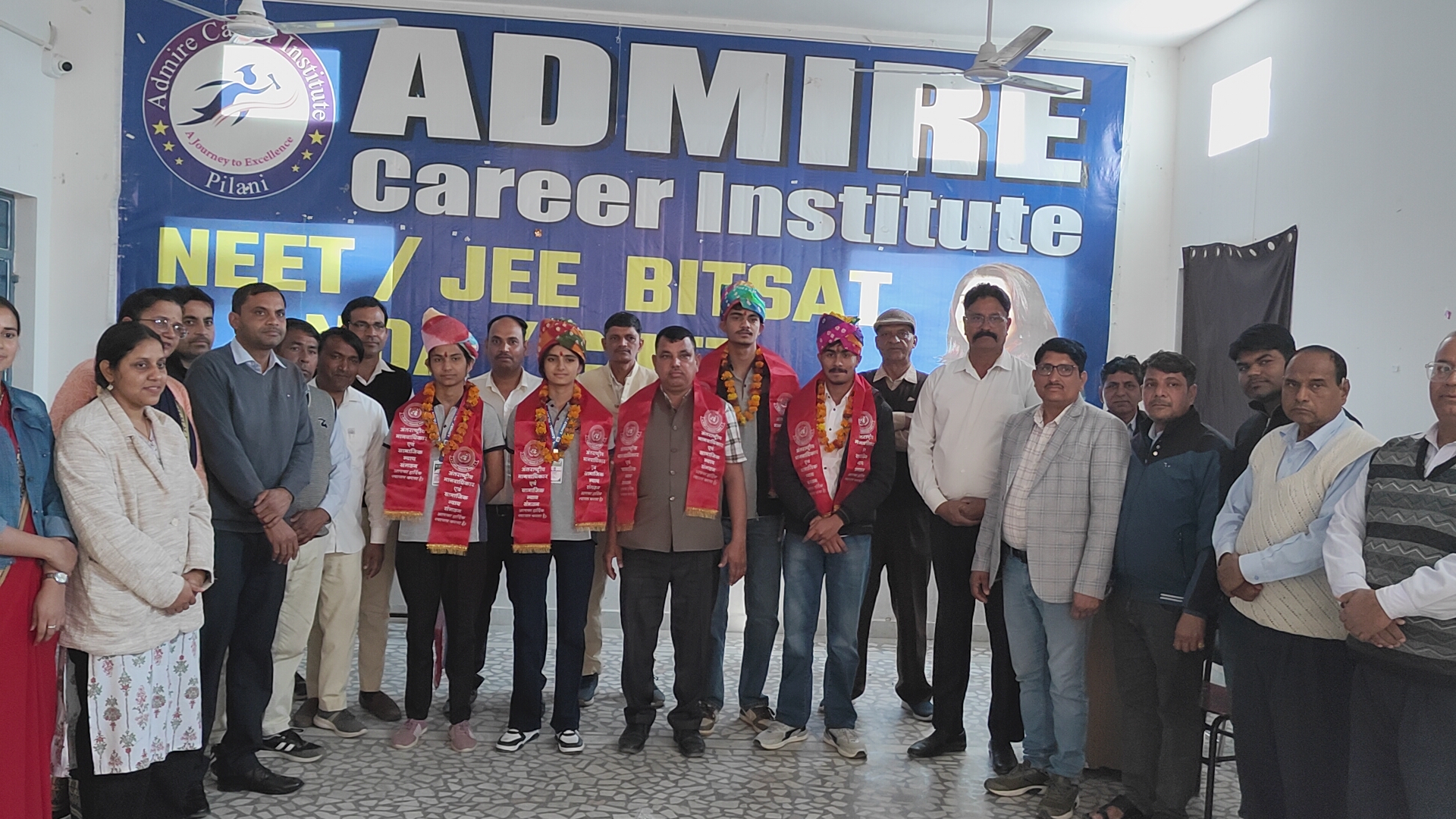 पिलानी :- कस्बे के ADMIRE कैरियर इंस्टिट्यूट( ADMIRE कोचिंग) के प्रथम बैच JEE MAIN का परीक्षा में 100% परिणाम देकर विद्यार्थियों ने नया इतिहास रचा दिया । परिणाम घोषित होते ही कोचिंग परिसर में उत्साह का माहोल बन गया | डायरेक्टर विजय सिंह श्योराण (विजय गुप ऑफ एज्यूकेशन) ने खुशी जाहिर करते हुये बताया कि संस्थान के सभी विद्यार्थियो ने शानदार प्रदर्शन करते हुए सफलता हासिल की है | उन्होंने बताया कि मंयक जाँगिङ पुत्र भी बुद्धराम जाँगिड़ (91.79% tile) खुडानिया, आदित्यवर्धन पुत्र श्री भवानी सिंह (91.02% tile)रामपुरा, मोनिका पुत्री श्री सुरेश कुमार (89.61%-tile) पिपली व कंचन धायल पुत्री महेन्द्र सिंह धायल (85.17% tile) झेरली प्राप्त कर संस्थान का नाम रोशन किया है| इस उपलब्धि पर कोचिंग परिसर में विद्यार्थियों का साफा, माला व मिठाई खिलाकर सम्मान किया गया। साथ ही अंतर्राष्ट्रीय मानवाधिकार और सामाजिक न्याय संगठन के राष्ट्रीय अध्यक्ष एजुकेशन ब्रजेश पाठक ने सभी को अंग वस्त्र देकर सम्मानित किया वही विजय सिंह श्योराण ने सफलता का श्रेय संस्थान के समर्पित स्टाफ कि कड़ी मेहनत, विद्यार्थियों के नियमित व अनुशासित अध्ययन व अभिभावकों के सकारात्मक सहयोग को दिया। व्यस्थापक केदारमल झांझरिया ने बताया कि इस उपलक्ष में दिनांक 18.02.2026, बुद्धवार को विजय ग्रुप ऑफ एज्यूकेशन द्वारा भव्य "विजय रथ" का आयोजन किया जायेगा। विजय रथ सुबह 11:15 बजे कोचिंग कैंपस से प्रारम्भ होकर बस स्टैण्ड, भगत सिंह सर्किल, चिड़ावा बाईपास, धिंधवा सर्किल, लुहारु बाईपास से राजपूरा, राजगढ़ हाईवे से होते हुये रायला मोड़ व झेरली रोड होते हुये खेल मैदान में विजय रथ का आतिशबाजी के साथ समापन किया जायेगा ।