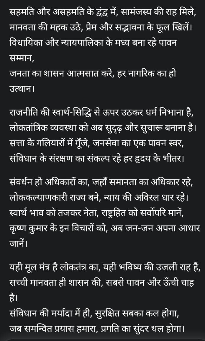 लोकतांत्रिक व्यवस्था में समानता और संतुलन के साथ साथ लोकतांत्रिक व्यवस्था में जनहित लोककल्याण सर्वोपरि कृष्ण कुमार पाठक खबरहलचल न्यूज